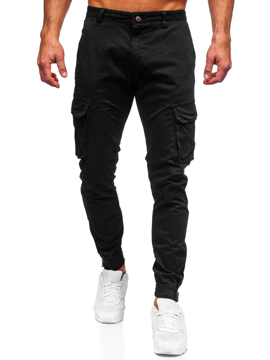 A felhasználók véleménye Fekete pamut jogger oldalzsebes férfi nadrág Bolf 77322
