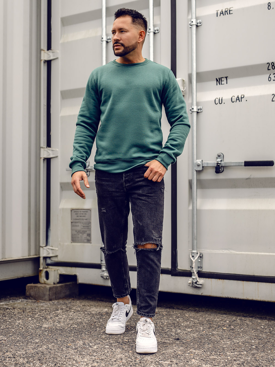 Zöld, férfi pulcsi a Bolftól a minimalista stílus kedvelőinek. Alakra szabott, kényelmes és univerzális. Kapucni nélküli pulcsi, jól mutat farmerral, vagy modern stilizációkban joggerrel. Tónusos, zöld szín, jól mutat különleges és extravagáns stilizációkban.