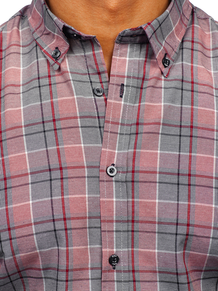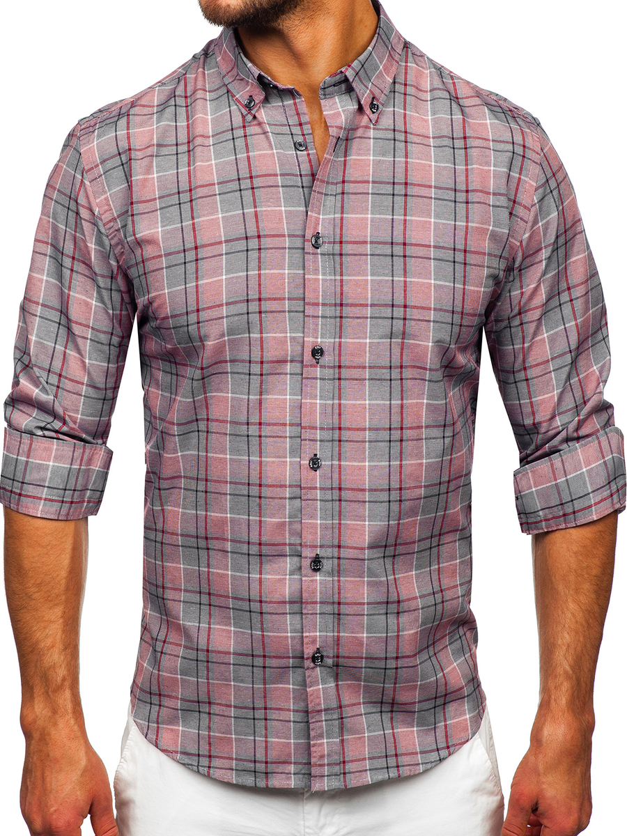 A felhasználók véleménye Piros kockás hosszú ujjú férfi ing Bolf 22748