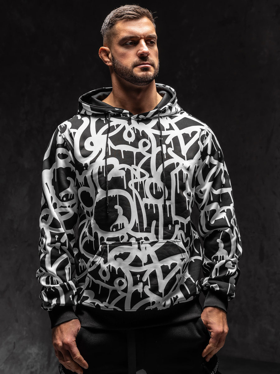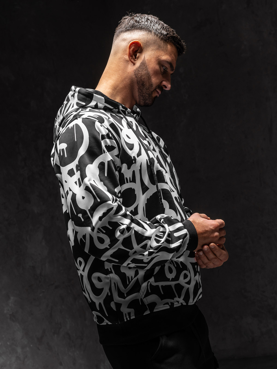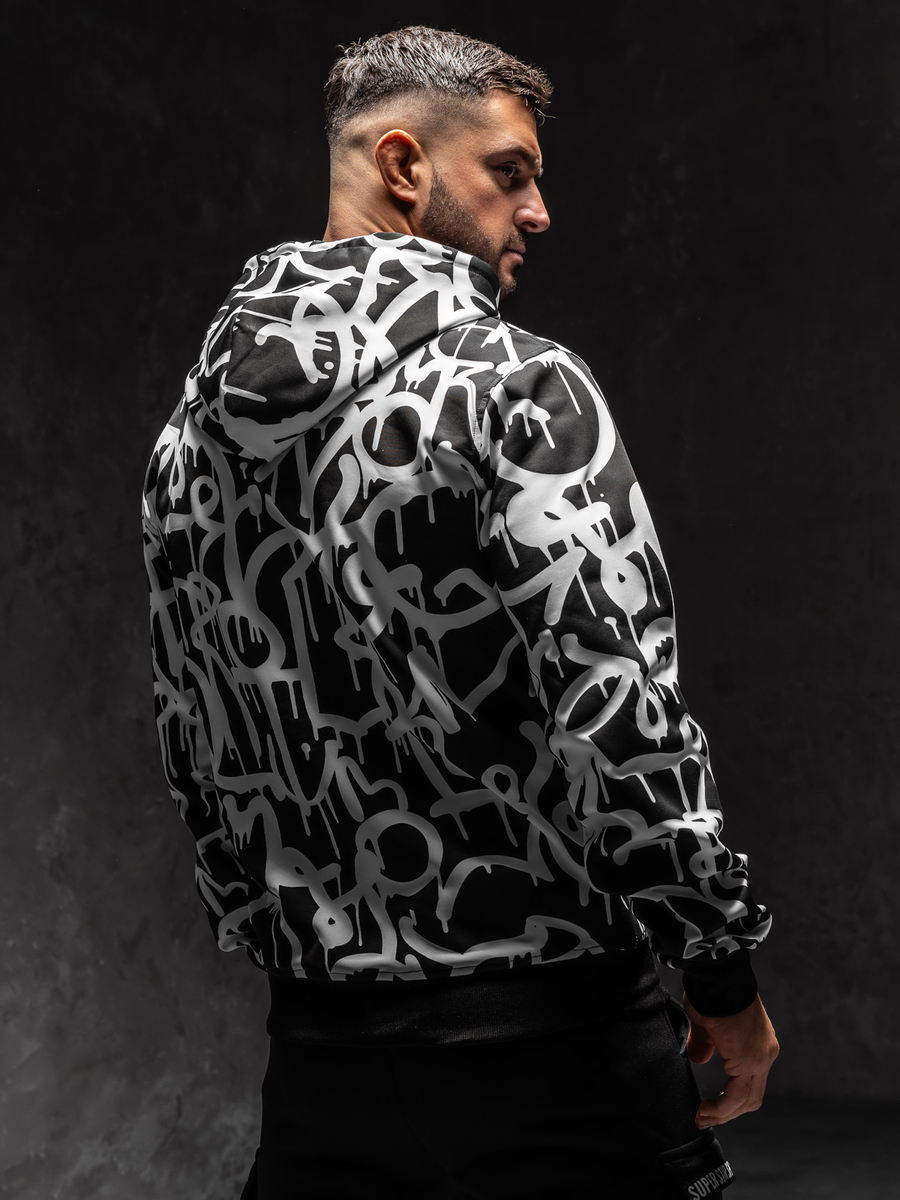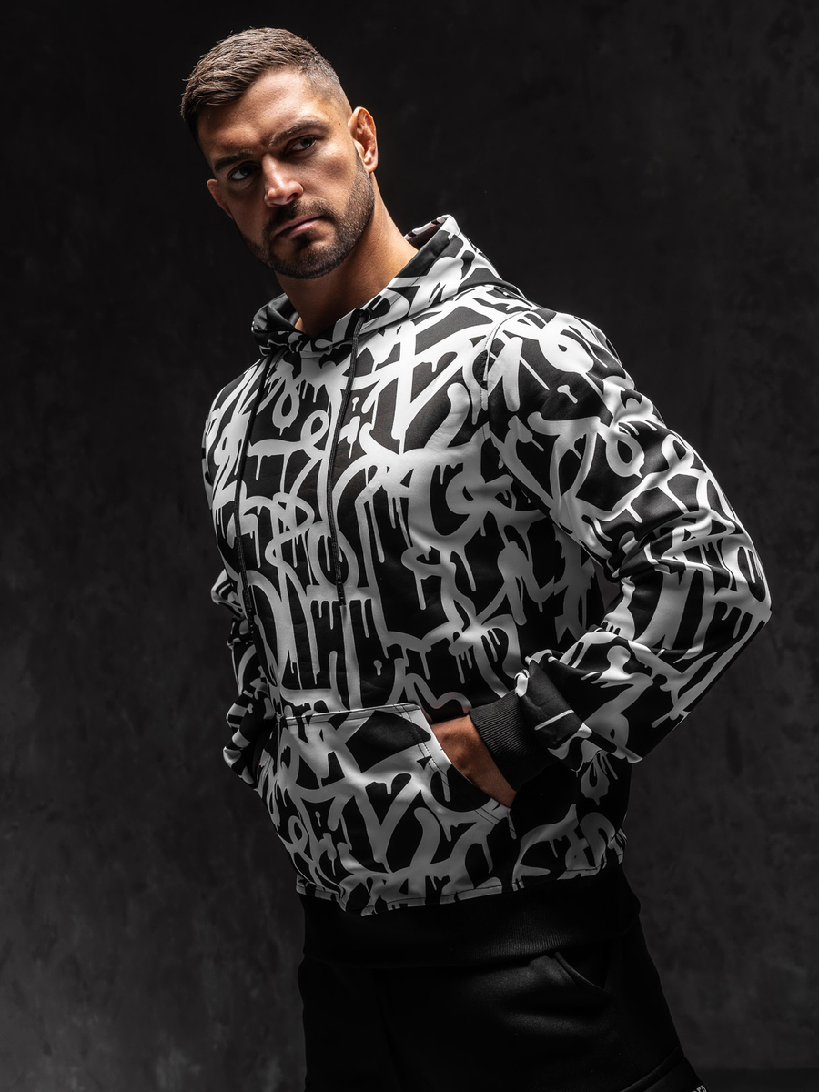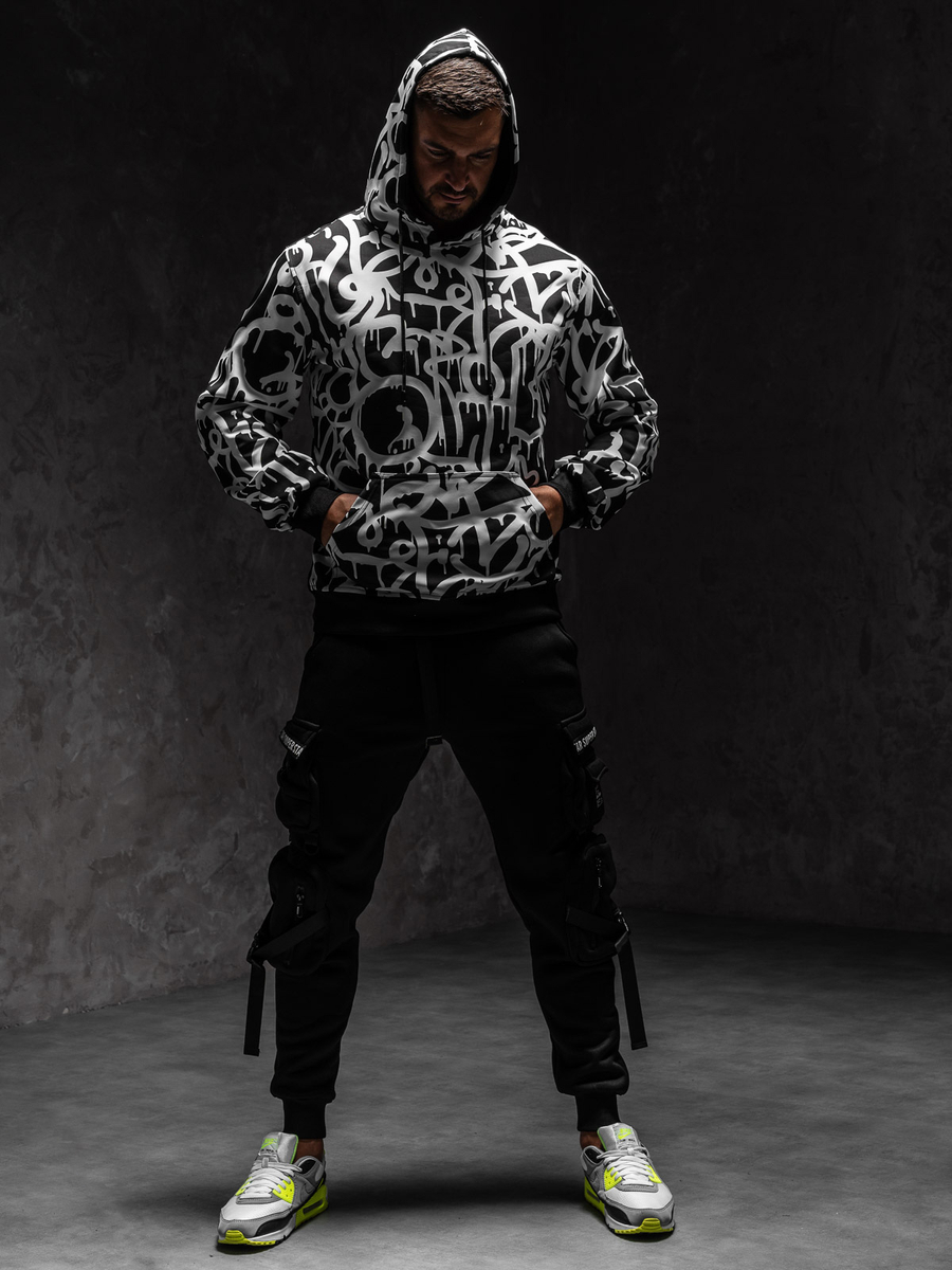 A felhasználók véleménye Fekete-fehér férfi kenguruzsebes pulcsi kapucnival mintával Bolf 8B1152A1