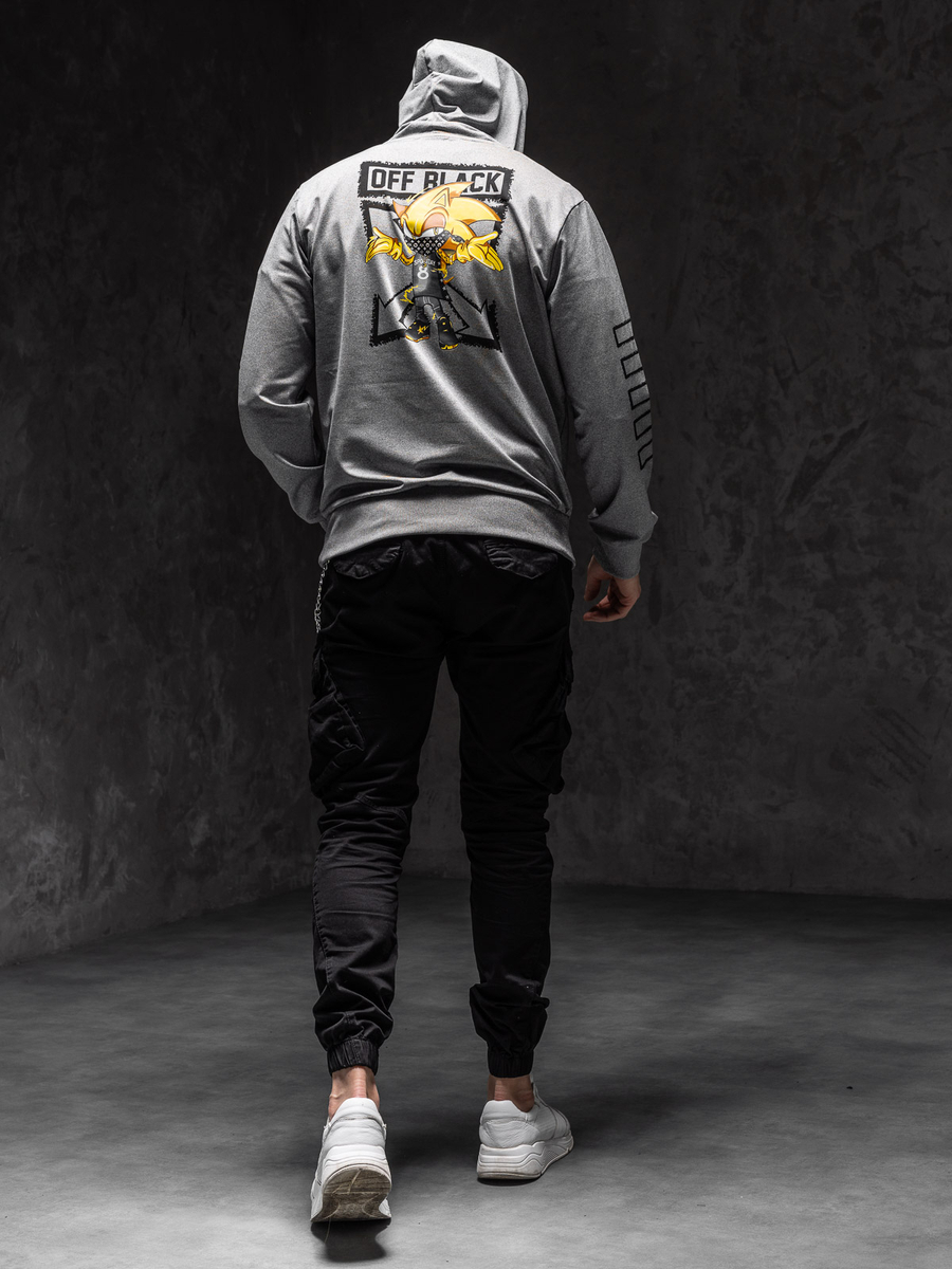 Szürke mintás férfi pulcsi kapucnival Bolf HM611A1 egy must have termék minden évszakra. A kapucni dupla megkötővel állítható, mely véd a szél és az eső elől. Az ujjak és az alja passzés, melynek köszönhetően nagyszerűen alakra szabott. Praktikus eleme a kenguruzseb. A termék kellemes tapintású és tartós anyagból készült. Különleges jelleget a díszes minta biztosít elől és hátul. A pulcsi nagyszerűen párosítható farmerral, melegítőnadrággal, oldalzsebes nadrággal és chinoval. Bátran párosítsd pólóval, farmerral és bőrdzsekivel.