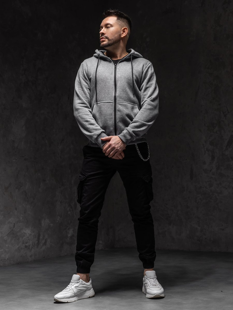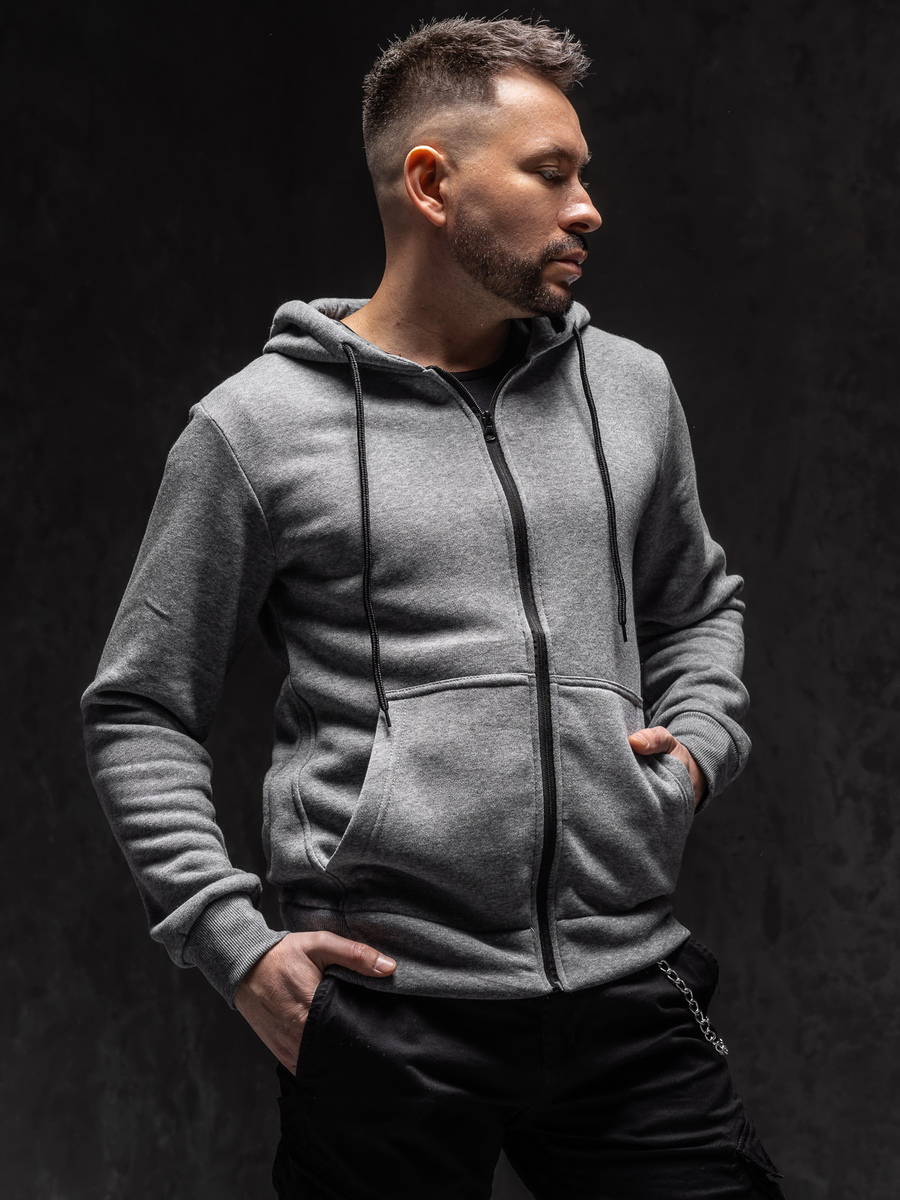 A felhasználók véleménye Sötétszürke cipzáros férfi pulcsi kapucnival Bolf HW2787A1