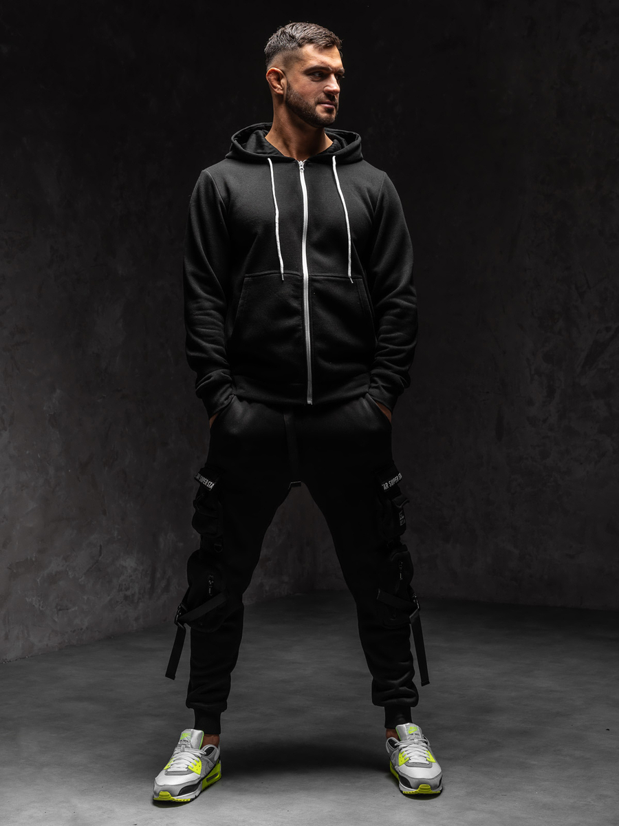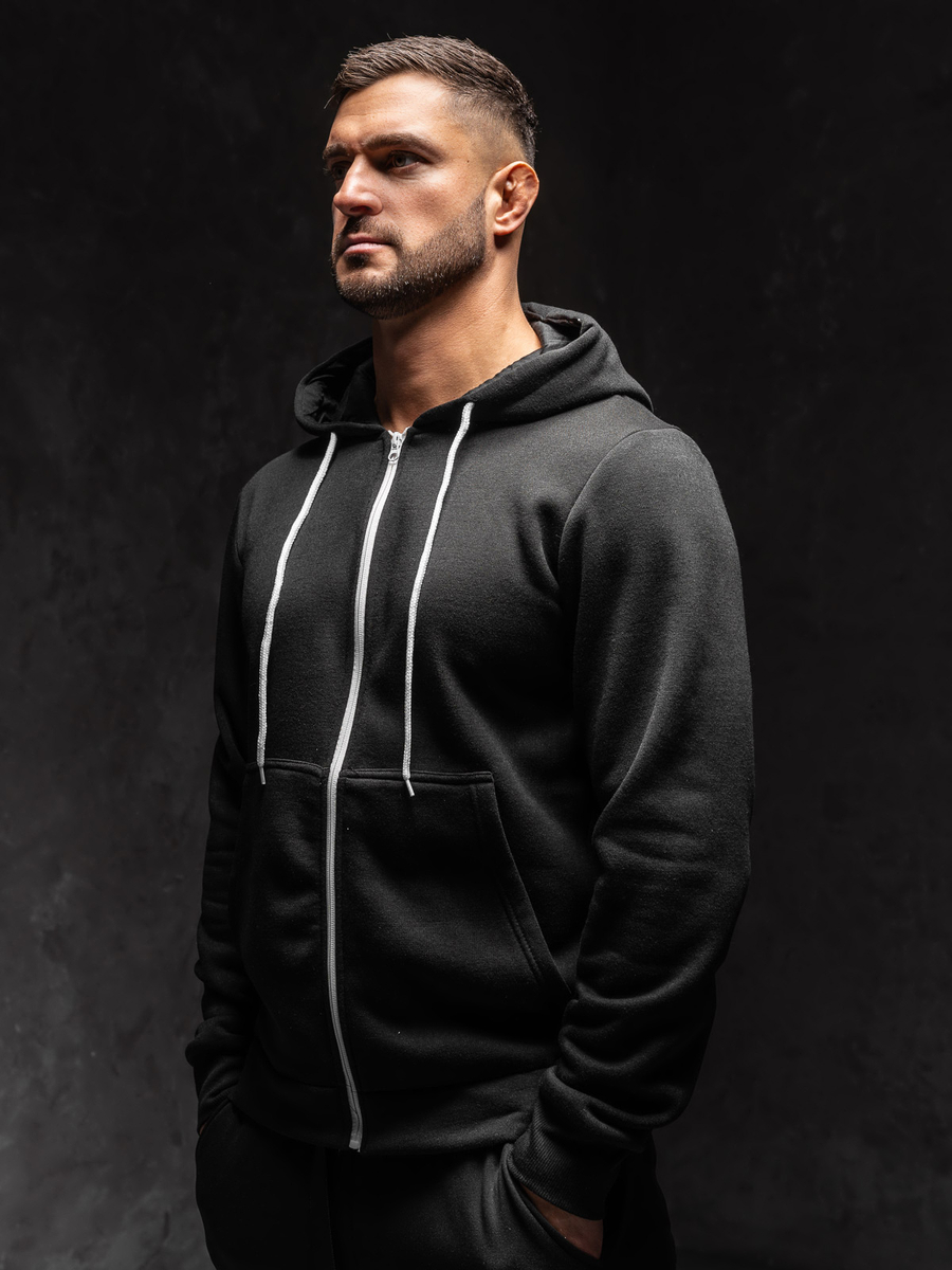 Fekete cipzáros férfi pulcsi kapucnival Bolf HW2787A1 egy must have egy férfi gardróbszekrényében. Cipzározható pulcsi állógallérral és kapucnival. A pulcsi ujjai passzésak, ennek köszönhetően a pulcsi jól idomul az alakhoz.A két oldalsó zseb praktikussá teszi.. A legmagasabb minőségű anyag (65% pamut és 35% poliészter) kényelmet biztosít a hétköznapi stilizációkban. Nagyszerűen megállja a helyét melegítőnadrággal párosítva, Sportos outfitet biztosít. Viselheted pólóval, joggerrel és bőrdzsekivel, univerzális kinézetet biztosít..