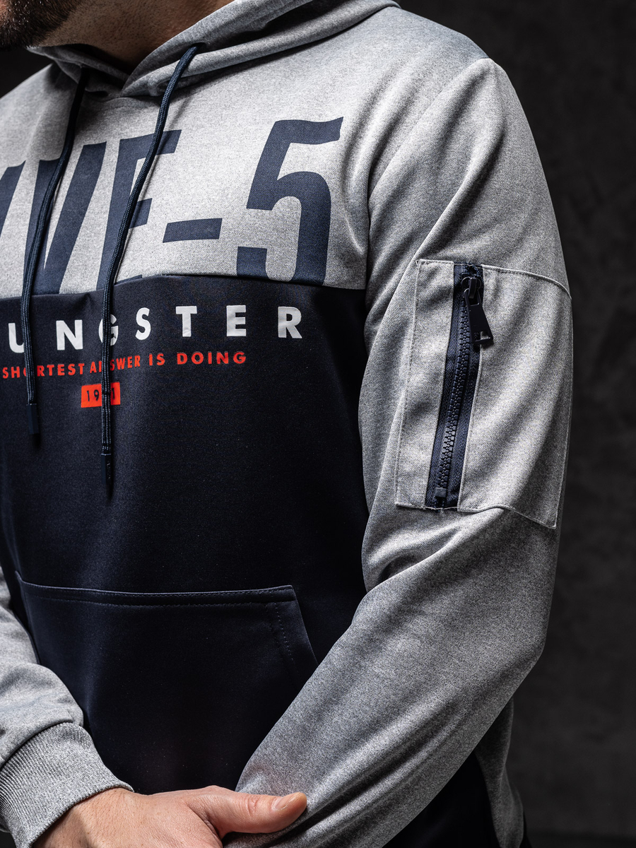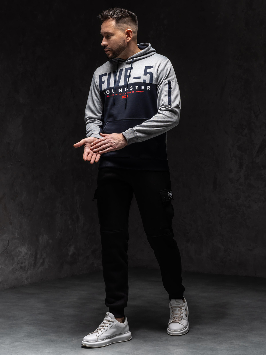 Sötétkék mintás férfi pulcsi kapucnival Bolf HY972A1 egy nagyszerű választás minden férfinak, aki értékeli a divatos lookot és kényelmet. Pulcsi eredeti nyomattal az elején, ennek köszönhetően nyeri el egyedi karakterét. Három színben elérhető. Az ujjak és a pulcsi alsó része praktikus passzéval rendelkezik. A pulcsi kényelmes kenguru típusú zsebbel és kétrétegű, állítható kapucnival rendelkezik. Ez a modell - remek ajánlat lehet az aktívan élő férfiaknak. Nagyszerűen mutat majd az edzésken, jogging közben és a sporttevékenységek során a szabad levegőn. A nagyon jó minőségű anyagnak köszönhetően rendkívül kényelmes. Hogyha értékeled a kényelmet, akkor párosíthatod melegítővel és mellénnyel. A termék univerzális, ami lehetővé teszi, hogy olyan casual stílust alkoss, amelyet akkor is használhatsz, ha kiruccanásra készülsz a barátokkal vagy egy hétvégi kirándulás során. Párosítsd farmerral, pólóval és bőrdzsekivel.