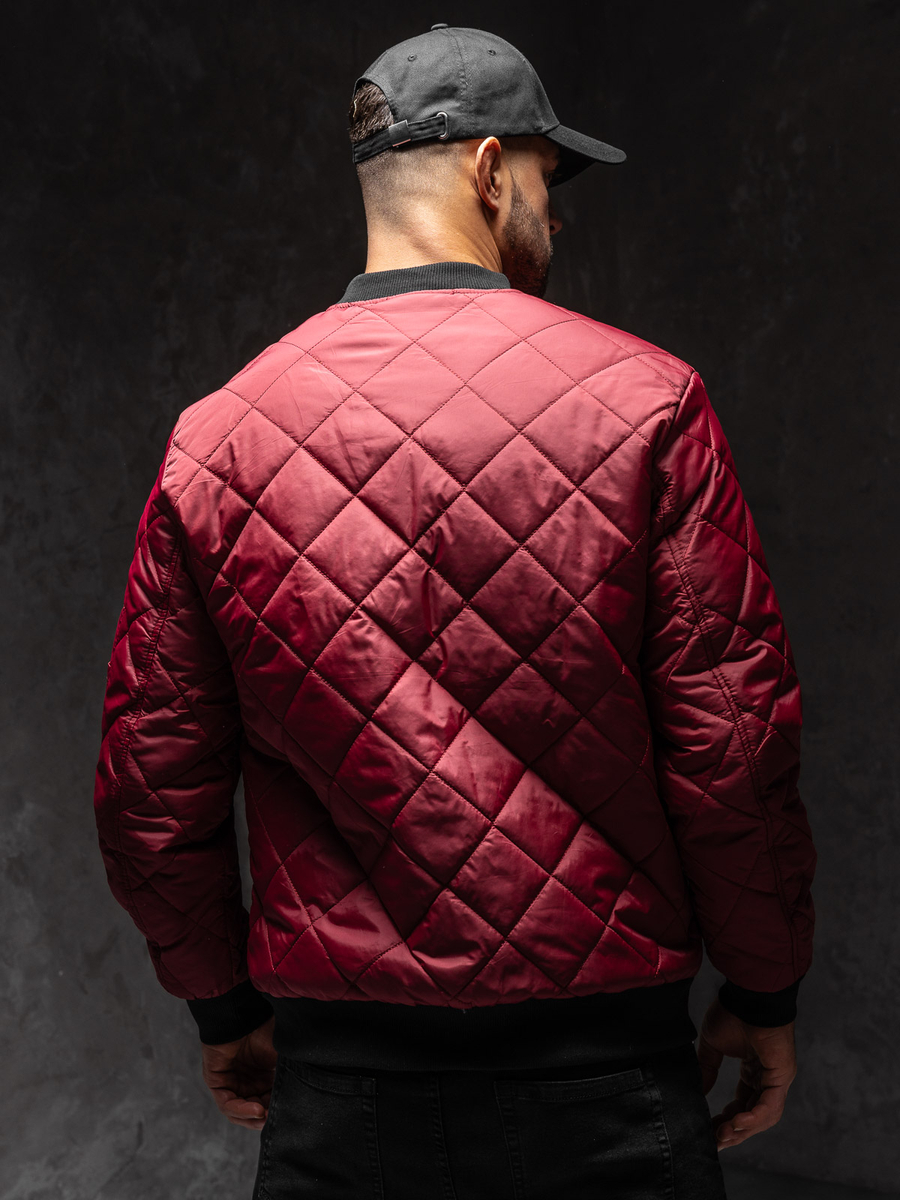 Bordó átmeneti steppelt férfi bomberdzseki Bolf MY-01A1 egy divatos klasszikus a bomberdzsekik között. A dzseki az egyszerűségének és a kivitelezés minőségének köszönhetően időtálló és több évszakban is viselhető. A bomberdzseki nagyszerűen illeszkedik a legújabb trendekhez, kellemes tapintású anyagból készült. Rombusz alakú steppeléssel. Állógallérral rendelkezik, mely cipzározható. Az ujjak, a gallér és a dzseki alsó része széles, fekete szűkítőkkel van ellátva. Bomber, két praktikus, külső cipzáras zsebbel rendelkezik. További zárható zsebbel a bal ujjon