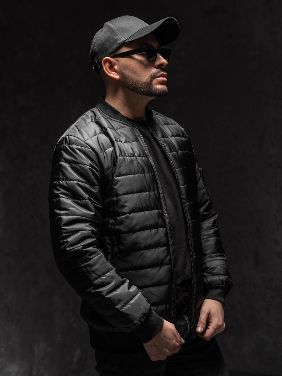 Fekete átmeneti férfi bomberdzseki Bolf MY-02A1 steppelt, függőleges csíkozással Cipzározható. A bomber típusú dzseki jól mutat sportos és hétköznapi stilizációkban, nagyszerű kiegészítése a streetes outfitteknek is. Praktikus állógallérral rendelkezik. Két külső cipzáros zsebbel és egy extra cipzározható zsebbel a bal ujjon. Az ujjak, az alja és a gallér kontrasztos fekete színű passzéval ellátva. A dzseki az egyszerűségének és a kivitelezés minőségének köszönhetően időtálló és több évszakban is viselhető. Tökéletesen illeszkedik a modern trendekhez, könnyű, kellemes tapintású, könnyű és meleg anyagból készült. A sportos stílusú dzseki a hűvösebb napokon, kora tavasszal és ősszel is megállja a helyét. A széles színválasztéknak köszönhetően számos stilizációt alakíthatsz ki vele.