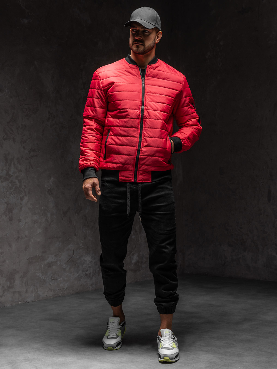 Piros átmeneti férfi bomberdzseki Bolf MY-02A1 steppelt, függőleges csíkozással Cipzározható. A bomber típusú dzseki jól mutat sportos és hétköznapi stilizációkban, nagyszerű kiegészítése a streetes outfitteknek is. Praktikus állógallérral rendelkezik. Két külső cipzáros zsebbel és egy extra cipzározható zsebbel a bal ujjon. Az ujjak, az alja és a gallér kontrasztos fekete színű passzéval ellátva. A dzseki az egyszerűségének és a kivitelezés minőségének köszönhetően időtálló és több évszakban is viselhető. Tökéletesen illeszkedik a modern trendekhez, könnyű, kellemes tapintású, könnyű és meleg anyagból készült. A sportos stílusú dzseki a hűvösebb napokon, kora tavasszal és ősszel is megállja a helyét. A széles színválasztéknak köszönhetően számos stilizációt alakíthatsz ki vele.
