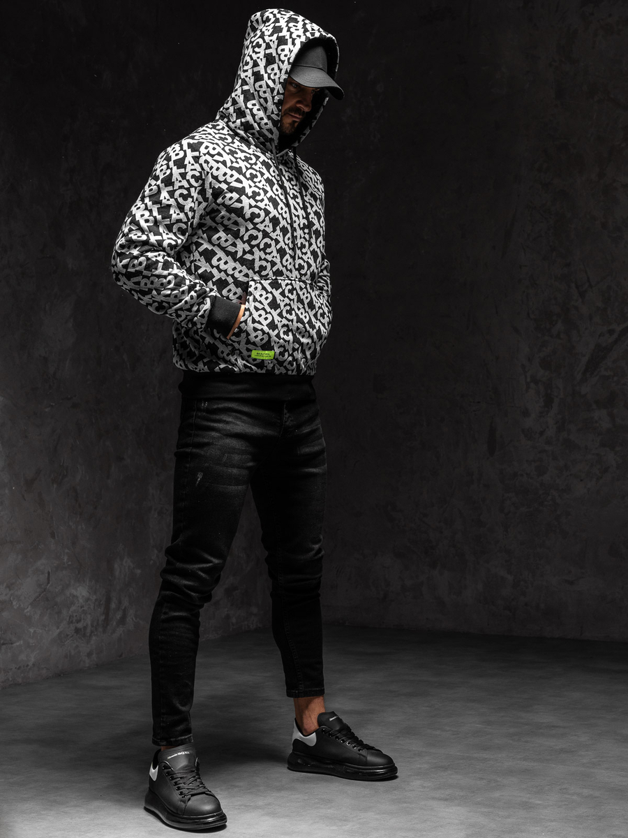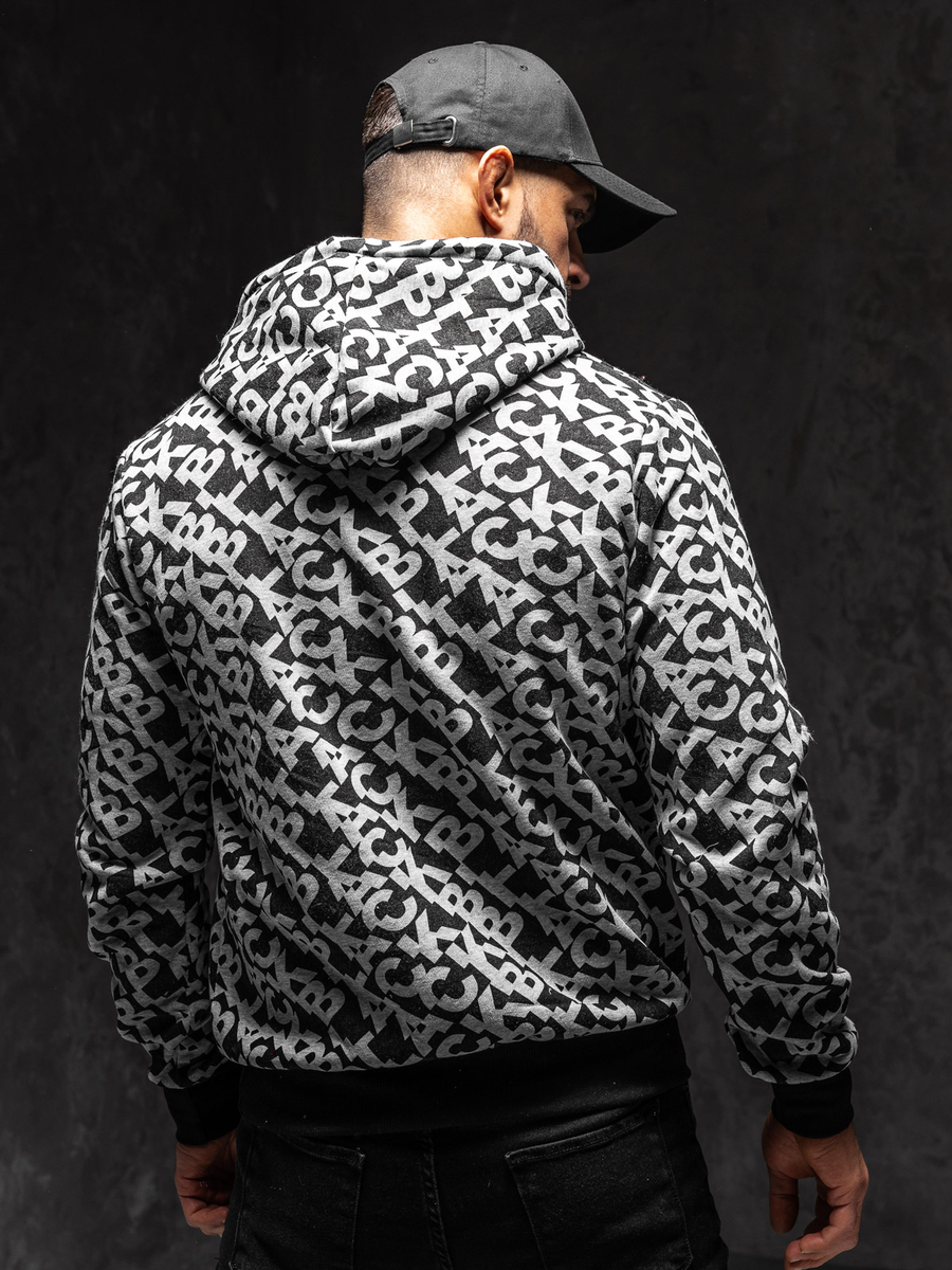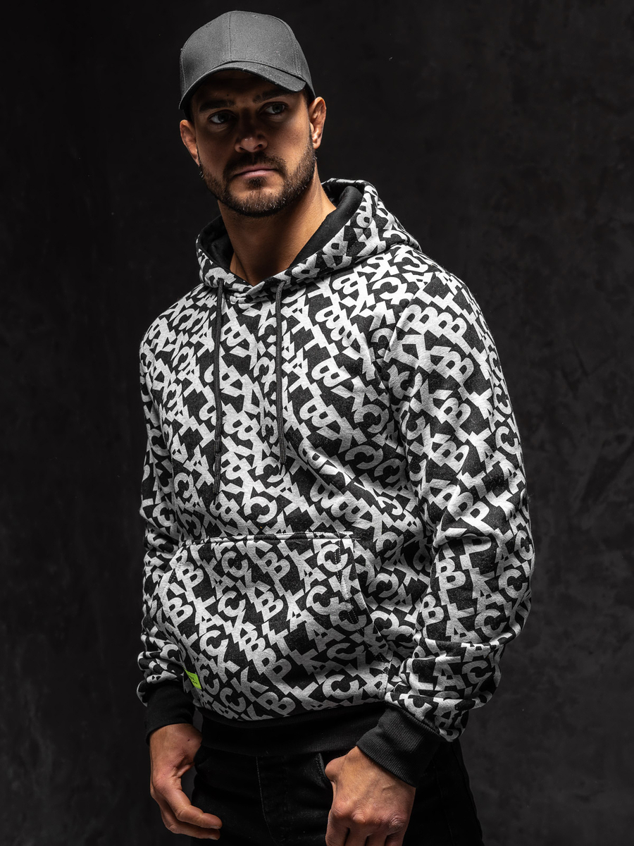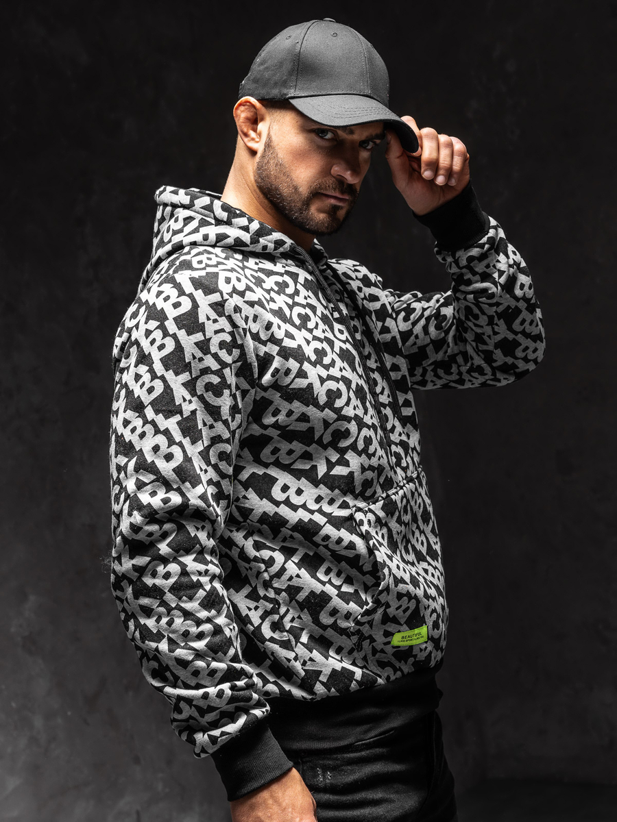 Fekete-szürke mintás férfi pulcsi kapucnival Bolf HW2320A1 egy nagyszerű választás a hűvösebb napokra. A pulcsi zsinórral állítható kétrétegű kapucnival van ellátva, praktikus és divatos kenguruzsebbel. Az ujjak és az alsó rész passzéval ellátva, mely véd a hideg ellen. 65%-ban pamutból és 35% poliészterből készült, ennek köszönhetően rendkívül kellemes a tapintása. Ez a modell, eredeti, dekoratív mintákkal van ellátva és két színváltozatban kapható. Bármely évszakban és szinte bármilyen körülmények között megállja a helyét. Megfelelő sportoláshoz, sétához vagy városi kiruccanáshoz. Egy baráti találkozásra párosítsd farmerral és bőrdzsekivel. Ha melegítővel és átmeneti dzsekivel párosítod sportos lookot kapsz.