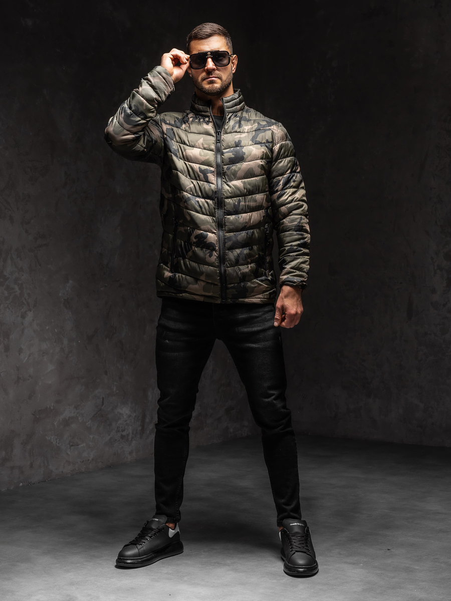 Zöld terepmintás steppelt férfi téli dzseki Bolf SM80A1 ideális az őszi és téli szezonra. Cipzározható, álló típusú gallérral és az ujjain rugalamas pánttal. Terepmintás dzseki, steppeléssel a teljes felületen, mely különleges, divatos jellemet biztosít. 100% poliészterből készült. Praktikus zsebekkel rendelkezik: két cipzározható külső zsebbel és két belső, zár nélküli zsebbel. Az univerzalitásnak köszönhetően nagyszerűen mutat különféle stilizációkban. Ideális sétára, baráti találkozásra vagy városi kiruccanásra. Ez a dzseki tökéletes szettet alkot chinoval és hosszú ujjú felsővel.
