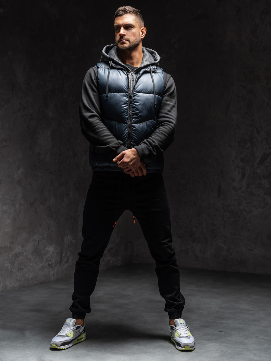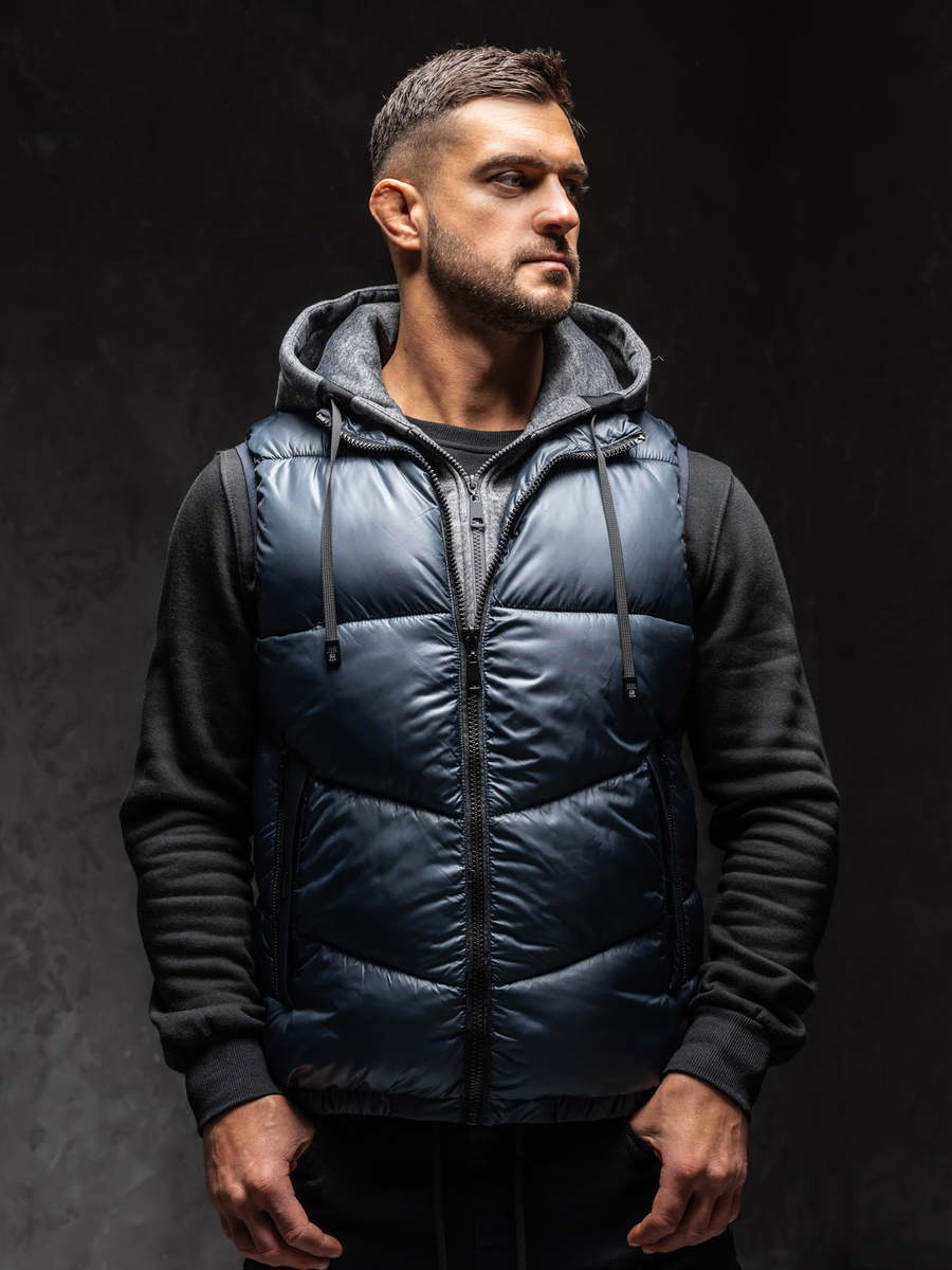 Sötétkék férfi mellény kapucnival Bolf 2908A1 nagyszerűen mutat különböző stilizációkban, mint sportos és városi. Ez a szabásában klasszikus steppelt mellény, nagyszerű alternatívája az őszi és a tavaszi dzsekinek, mely véd a hideg és a szél elől. Ennek a modellnek levehető kapucnis bélése van, így a stílusodhoz igazíthatod a megjelenésedet. Cipzározható. az alja passzés és az ujjak vége rugalmas szalaggal ellátott - mindez biztosítja számodra a meleget a hűvösebb napokon! A két cipzározható, külső zseb praktikussá teszi a mellényt. 100%-ban nejlonból készült. A mellény alapként szolgál különböző divatos stilizációkhoz, tökéletesen helyettesíti az átmeneti dzsekit. Fantasztikusan mutat párban melegtőnadrággal, mely sportos, lezser kinézetet biztosít. Viselhető amivel szeretnéd: hosszú ujjú felsővel, pulcsival, vagy pólóval!