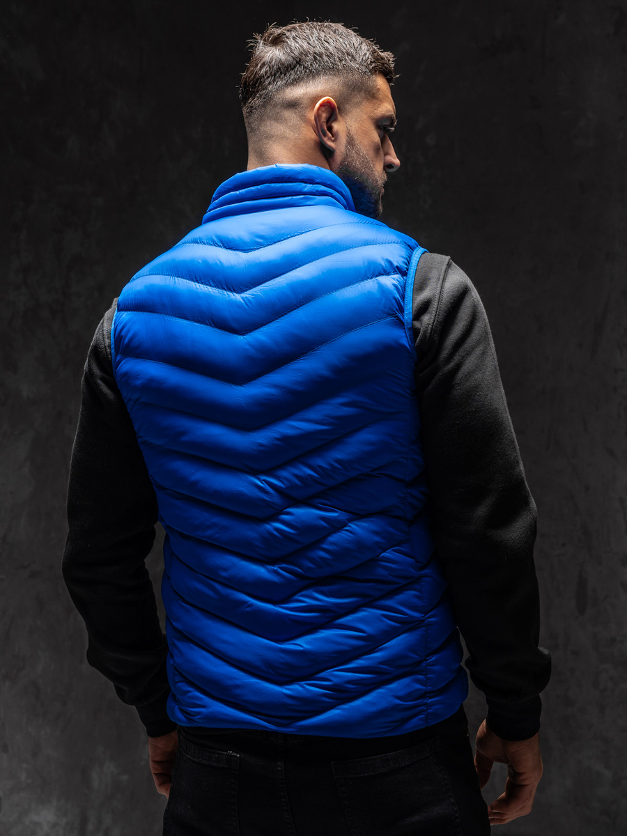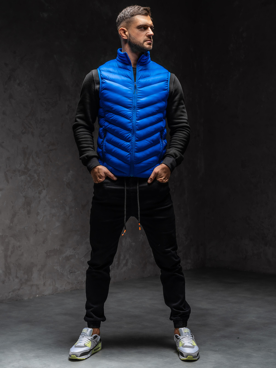 Kék steppelt férfi mellény Bolf HDL88006A1 nagyszerűen mutat sportos és városi stilizációkban is. Steppelt mellény, egy must have minden divatos férfi szekrényében. Cipzározható, álló típusú gallérral. A két külső zseb praktikussá teszi. Az alja és az ujjakon található nyílások rugalmas passzéval vannak ellátva. Ez a mellény ideális hétköznapi viselet hétvégi kirándulásokhoz, sétához vagy a jogginghoz. 100%-ban nejlonból készült. Perfect match-et biztosít joggerrel vagy melegítőnadrággal.