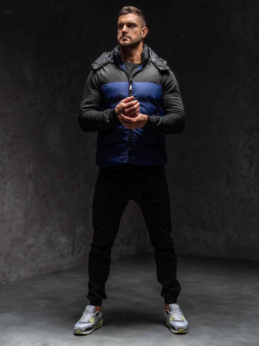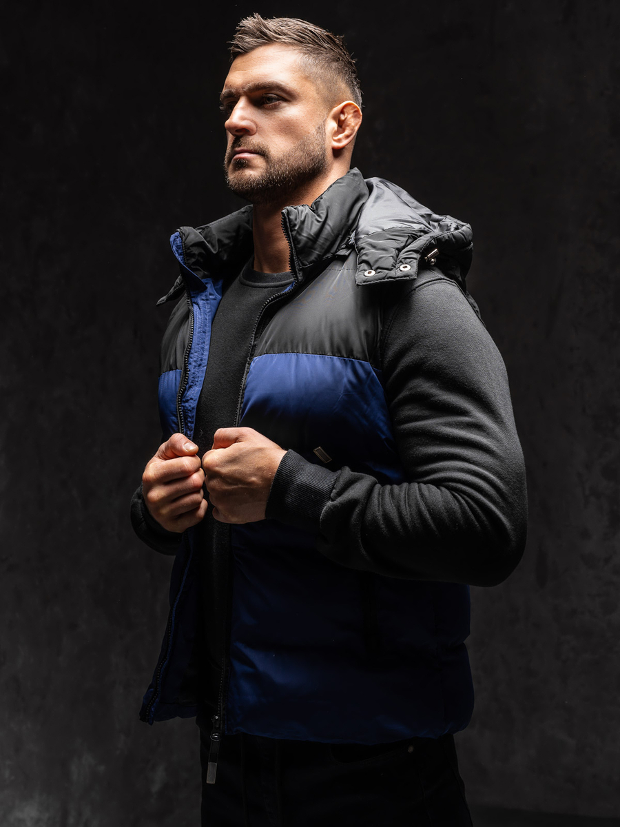 Sötétkék steppelt férfi mellény kapucnival Bolf 1189A1 egy steppelt termék. A mellény levehető kapucnival rendelkezik, amely az esős napokon véd a megázástól. Ez a termék kényelmes cipzárral zárható. A mellény állógallérral rendelkezik. A termék kétségtelen előnye a három cipzározható zseb. Két nagy külső zsebbel rendelkezik, melyek kiváló védelmet nyújthatnak a kezeidnek a fagyos napokon. Egy belső zsebbel rendelkezik, a kulcsok, a telefon, a dokumentumok vagy más apró tárgyak elrejtésére. A kapucni zsinórral ellátott, amellyel könnyen állítható. Ennek köszönhetően nagyszerűen véd a hideg és az eső elől.
