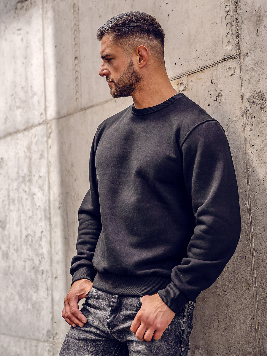Férfi pulcsi kapucni nélkül Bolf 2001A2 fekete színben, egy basic kategóriás ajánlat. Ez a modell számos, több-kevesebb intenzív színben is kapható, így számtalan ruhával könnyen összeilleszthető. A pulcsikat kifejezetten a minimalista divatirányzatok rajongóinak ajánljuk. Minta nélküli, kényelmes, szépen varrott. Must have a férfi divatos ruhásszekrényében. Az egyszerű, klasszikus, érdekes színű fazonjának köszönhetően ez a pulcsimodell nagyszerűen kiegészít számos hétköznapi és streetes stilizációt. Az ujjak és a pulcsi alsó része széles passzéval ellátva. A termék kellemes tapintású és tartós melegítőanyagból készült.