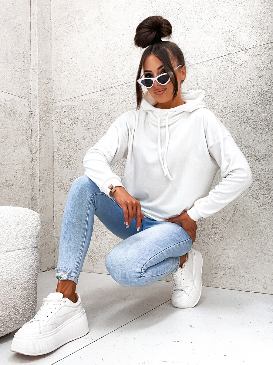 A felhasználók véleménye Ecrü színű velúr női pulcsi kapucnival Bolf 8270