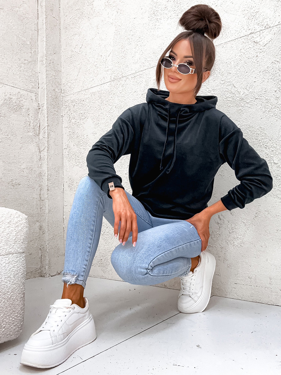 A felhasználók véleménye Fekete színű velúr női pulcsi kapucnival Bolf 8270