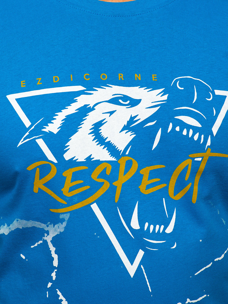 A felhasználók véleménye Búzakék férfi pamut póló mintával Bolf 5035