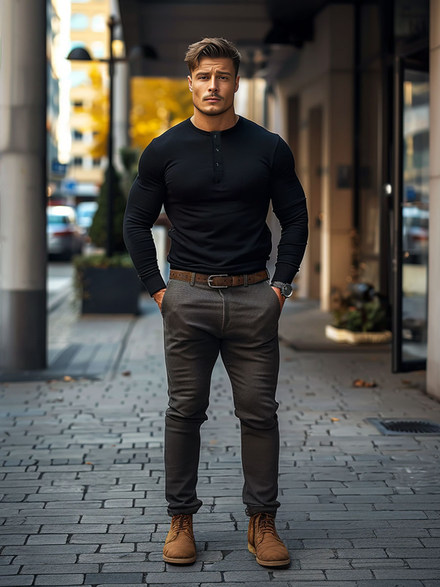 Fekete hosszú ujjú felső, henley típusú, ideális a hétköznapokra. Pamut, basic típusú a dekoltázsnál jellegzetes gombos zárral. Férfi fekete hosszú ujjú felsőt Bolf párosítsd farmerrel, chinó nadrággal vagy joggerrel. Viseld dzsekivel, vagy pulcsival.