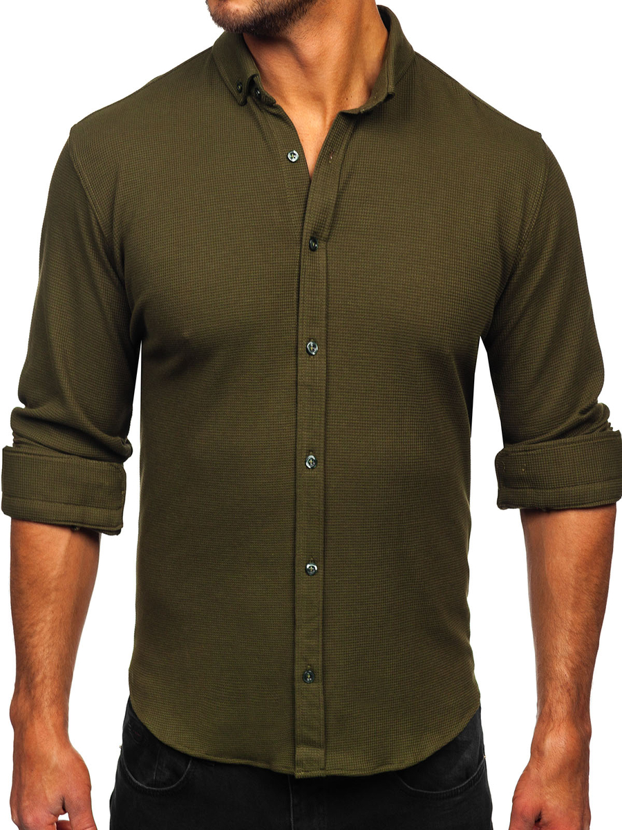 A felhasználók véleménye Khaki színű férfi muszlin ing hosszú ujjal Bolf 506