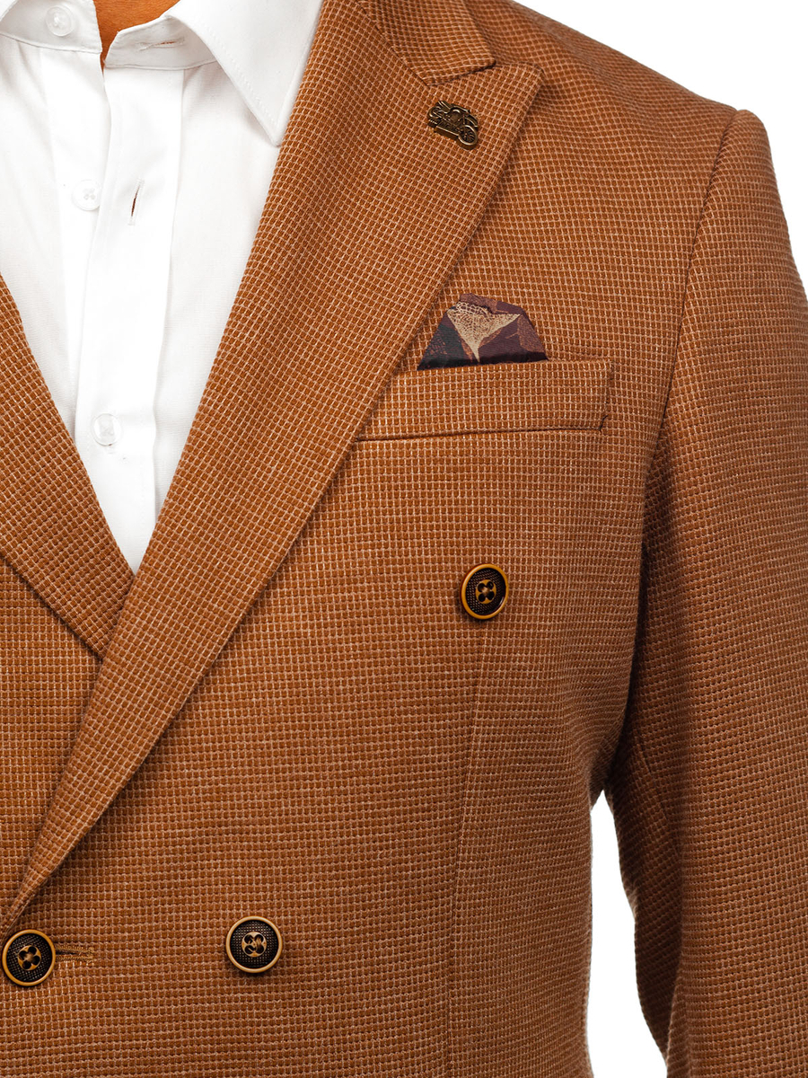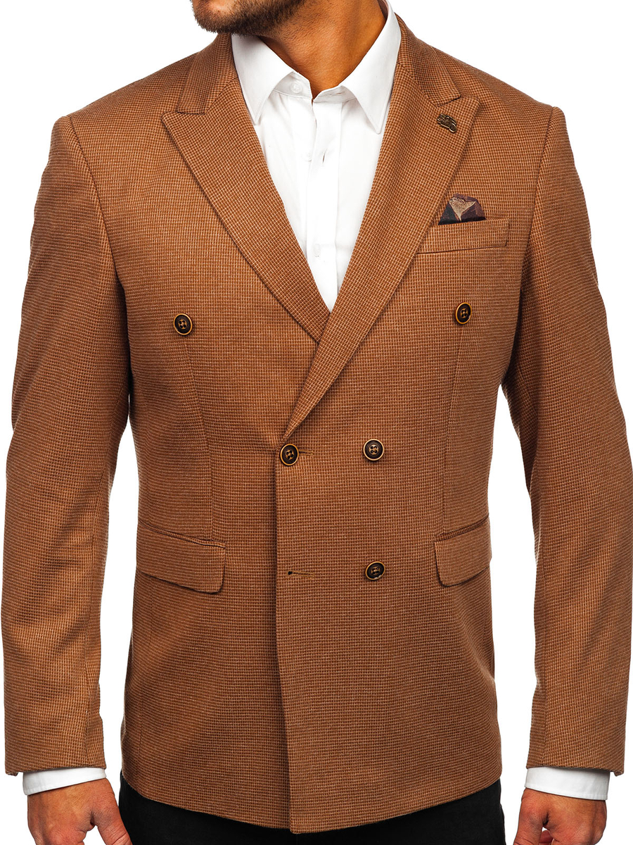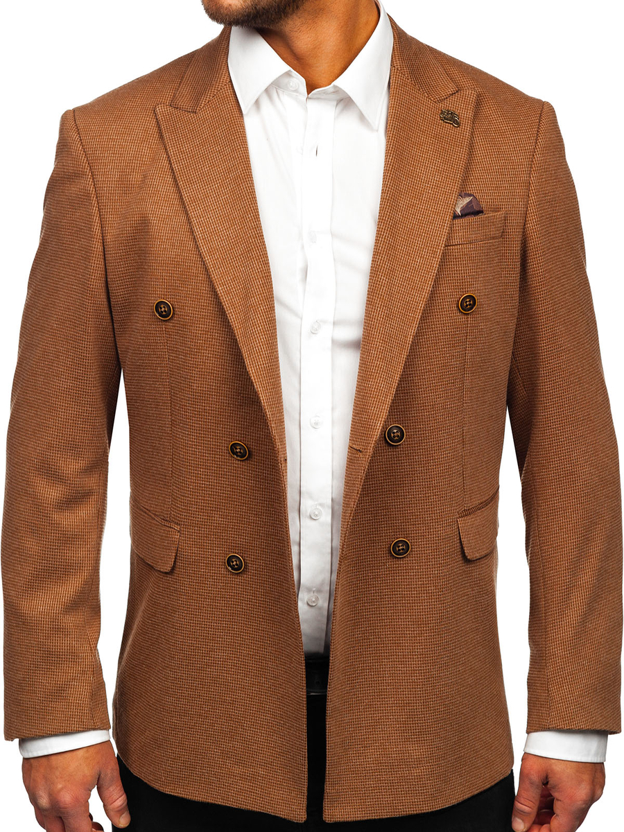 A felhasználók véleménye Barna kétsoros férfi casual zakó Bolf 002