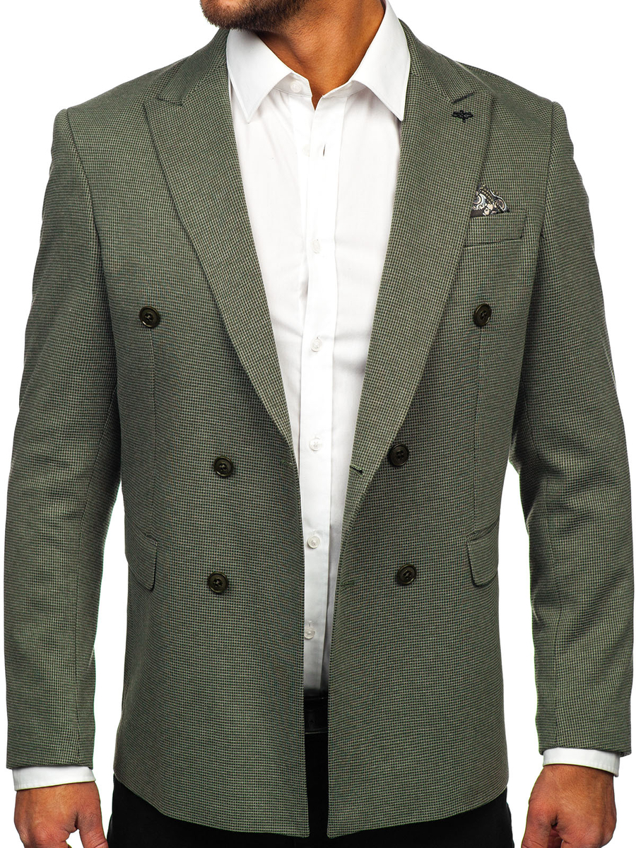 A felhasználók véleménye Zöld kétmellényes férfi okos blézer Bolf 005