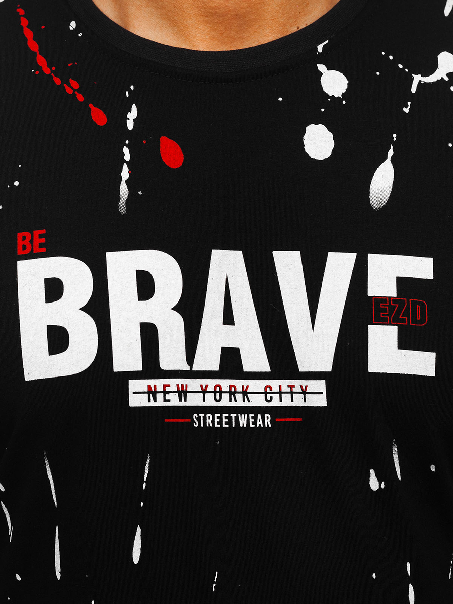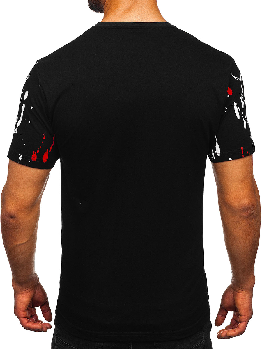 A felhasználók véleménye Fekete-piros férfi pamut póló mintával Bolf 14727