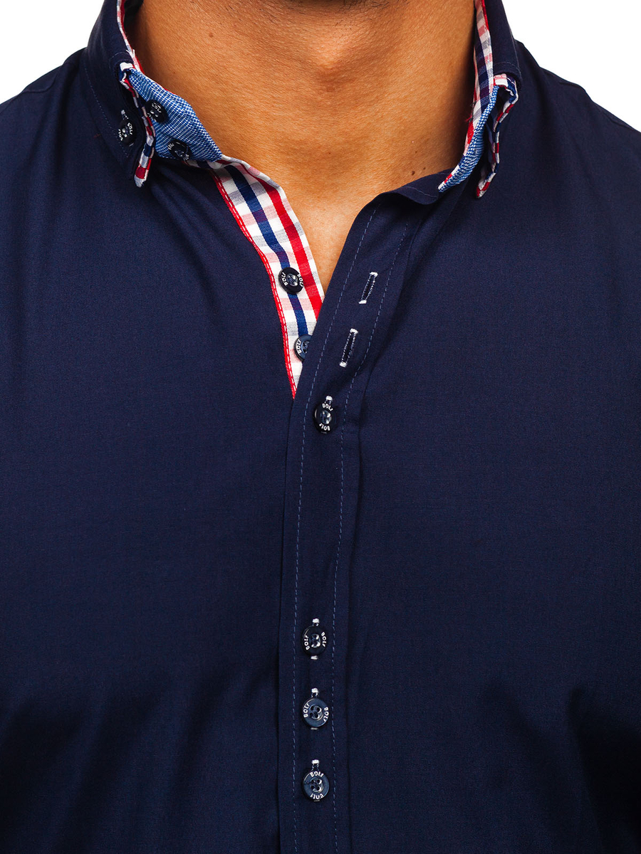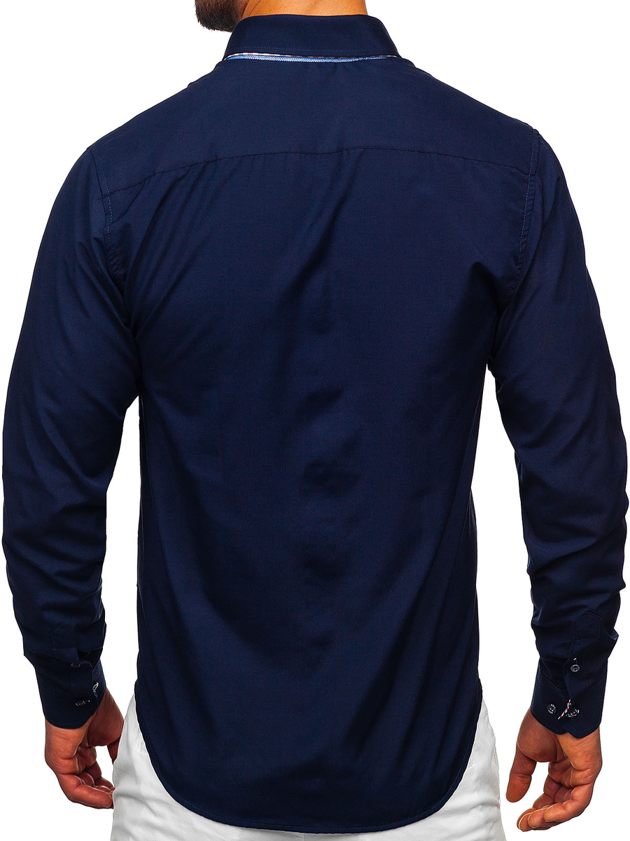 A felhasználók véleménye Elegáns hosszú ujjú férfi ing sötétkék színben Bolf 0926