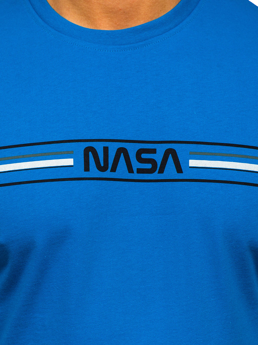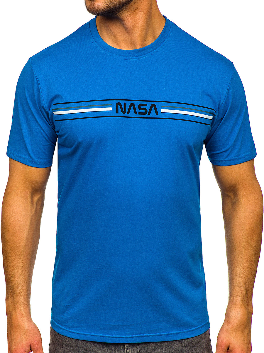 A felhasználók véleménye Égszínkék színű férfi pamut póló mintával Bolf 5052