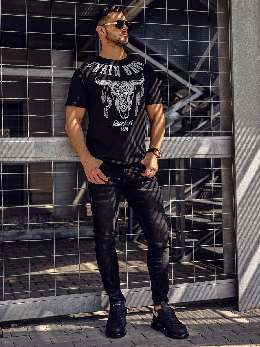 A felhasználók véleménye Fekete T-shirt férfi nyomott mintás Bolf 142174A
