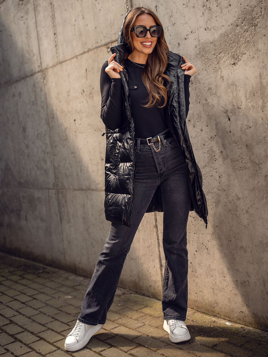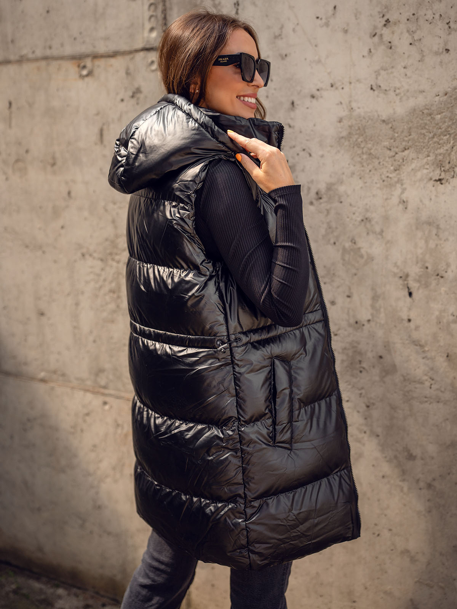 A felhasználók véleménye Fekete hosszú steppelt női mellény Bolf 5M3186A