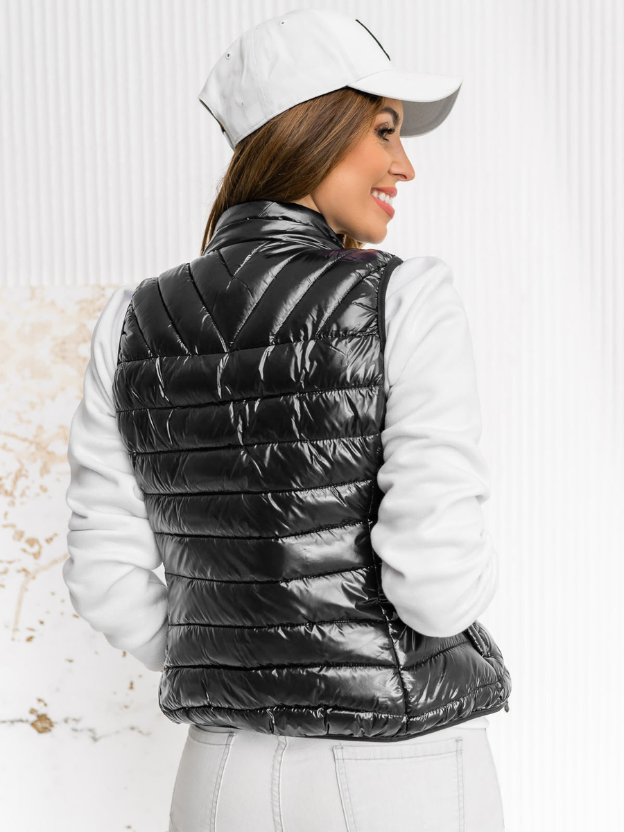 A fekete steppelt női mellény Bolf R0107A kiválóan alkalmas sportos és városi stílusok kialakításához. A teljes felületén található steppelés sportos jelleget kölcsönöz neki. Cipzározható, álló típusú gallérral. Praktikus jelleget a két cipzározható külső zseb biztosít. 100% nejlonból készült, ennek köszönhetően kifejezetten kényelmes . Ez a klasszikus szabású mellény nagyszerű alternatíva lehet a dzseki helyett az őszi és a tavaszi szezonban. Sikeresen helyettesítheti az átmeneti kabátot vagy akár a pulcsit, védelmet nyújtva a hideg és a szél ellen. A mellény alapként szolgál különböző stilizációkhoz. Fantasztikusan mutat párban melegtőnadrággal, mely sportos, lezser kinézetet biztosít. Kiválóan passzol farmerhoz és pólóhoz.