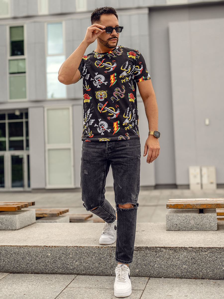 Mintás férfi póló -Bolf 14962- fantasztikus ajánlat azoknak a férfiaknak, akik értékelik a divatot és a jó kinézetet. A legmagasabb minőségű pamutból készült, ennek köszönhetően kellemes a tapintása és szellős. Jól kiemeli az alakot, kényelmes és nem akadályoz a mozgásban. Divatos minta vonzza a tekintetet és feldob bármilyen stilizációt. A casual és a sportos stilizációkban is megállja a helyét. Jól párosítható bomberdzsekivel és sportos nadrággal.
