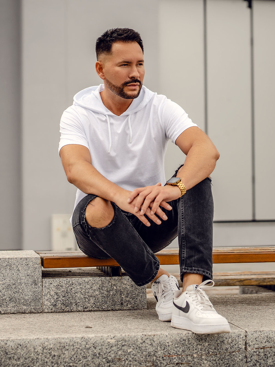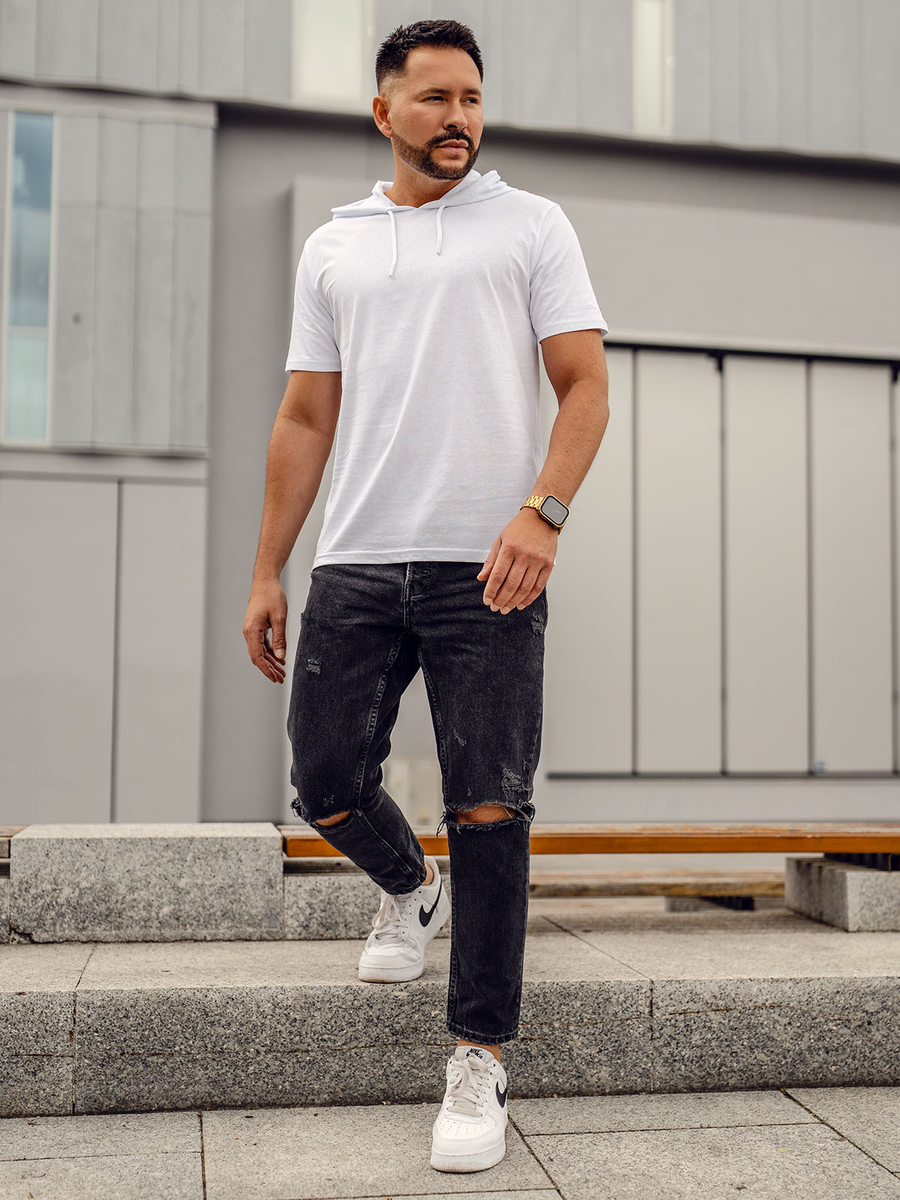 Fehér pamut férfi póló minta nélkül kapucnival Bolf 14513 to mega divatos alternatíva a hagyományos pólóhoz Ez a különleges póló divatos és praktikus kapucnival van ellátva. Négy színkombinációban kapható, aminek köszönhetően minden stílushoz passzol majd. A basic póló jól mutat majd minden alkalom során. Ez 100 % pamutból készült, aminek köszönhetően nagyon kényelmes és igényes termék. Ez a szekrényed must have darabja! Viselheted együttrövidnadrágjanikkal. Nagyon stílusosan mutat majd joggerrel és bőrdzsekivel.