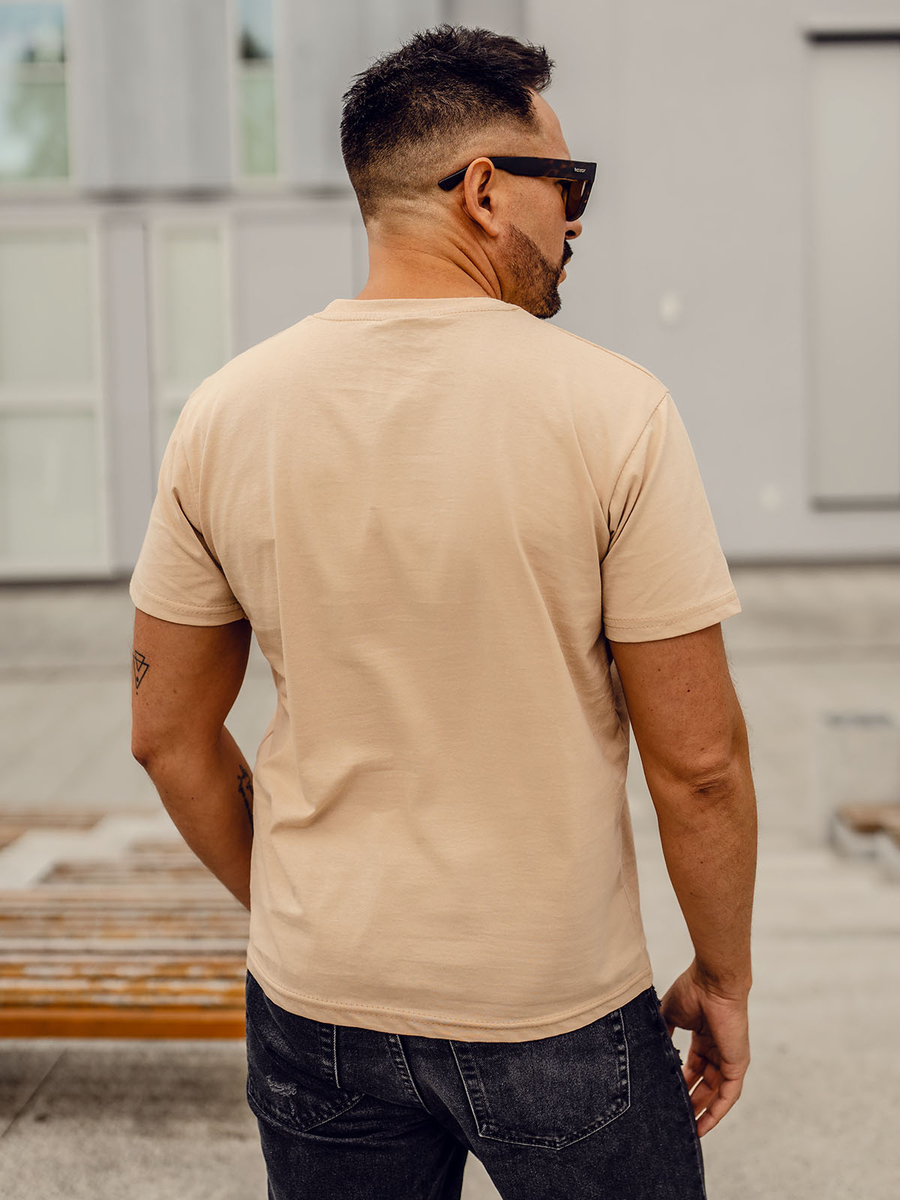 A felhasználók véleménye Bézs pamut férfi póló minta nélkül Bolf 192397A