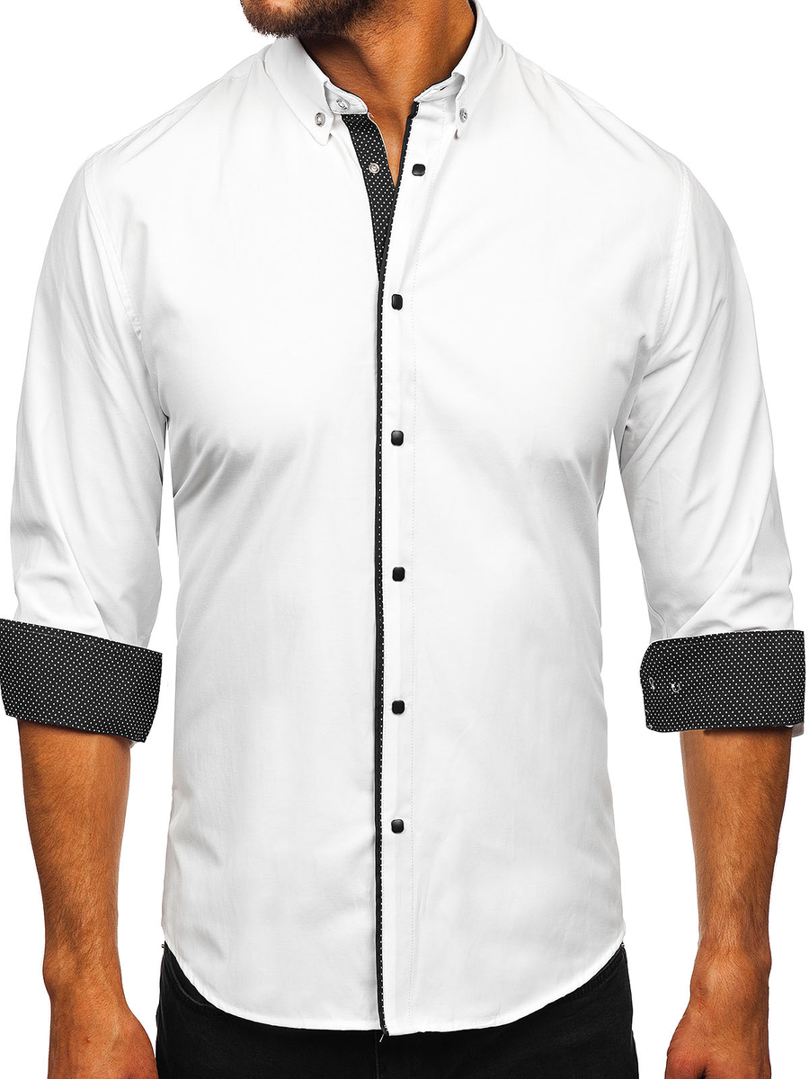 A felhasználók véleménye Fehér férfi elegáns hosszú ujjú ing Bolf 17724