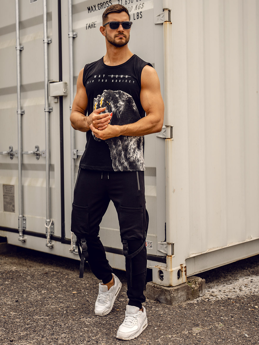 A felhasználók véleménye Fekete férfi tank top póló nyomtatással Bolf 14808A
