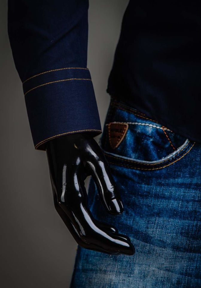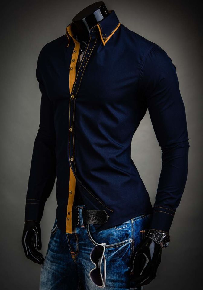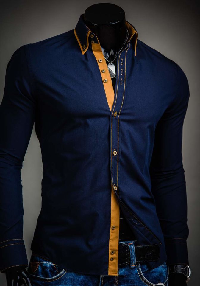 Stílusos, slim fit férfi Bolf ingek dupla, gombos gallérral. Kontrasztos berakásokkal. Sötétkék férfiing, jól fekszik és jól mutat zakóval, chinóval, vagy bőrdzsekivel. Ideális a hétköznapokra és különböző alkalmakra.