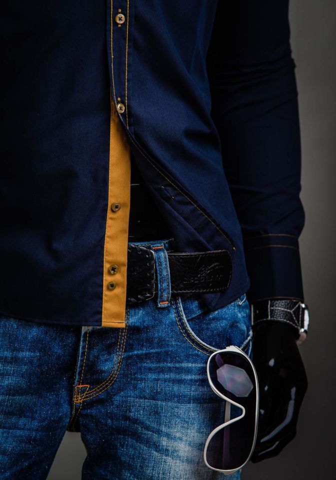 A felhasználók véleménye Sötétkék elegáns férfi ing hosszú ujjú Bolf 3703A