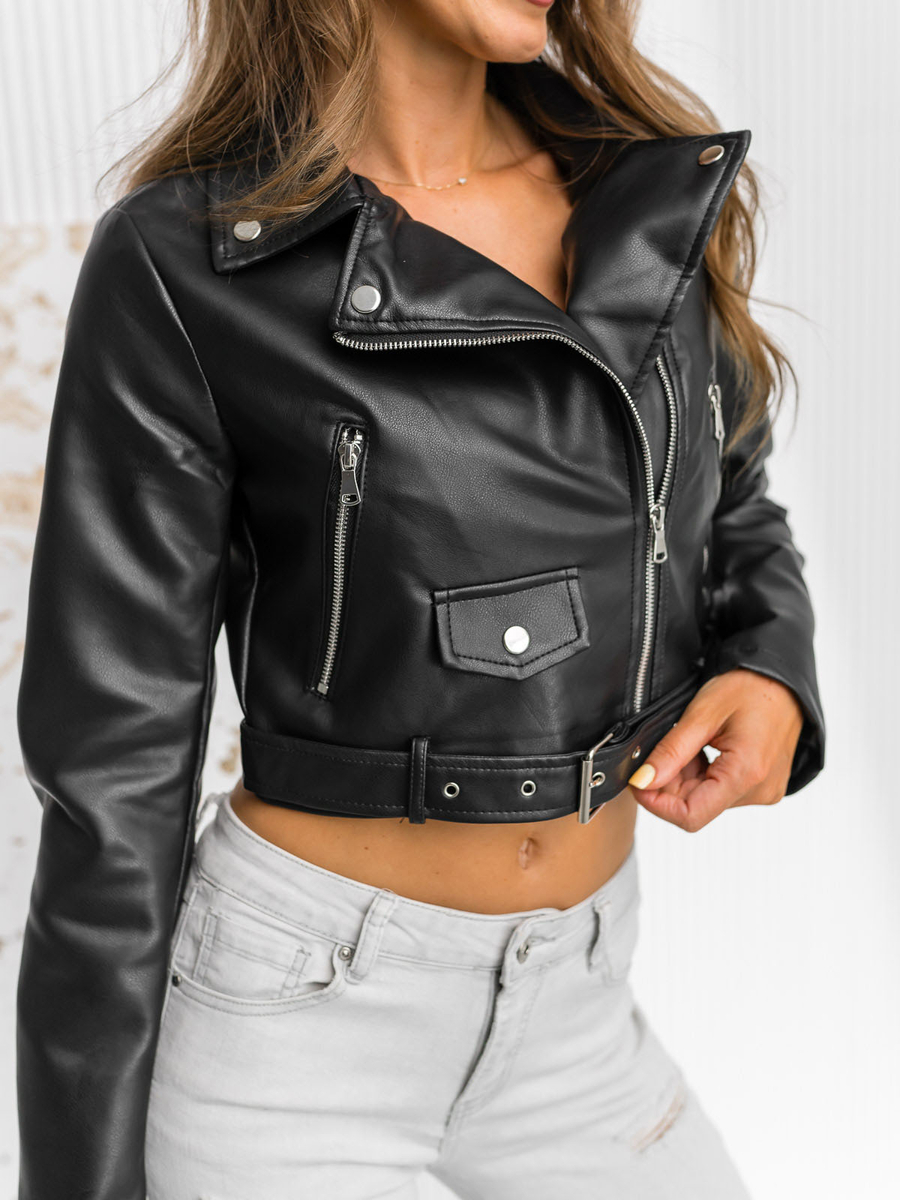A Bolf 102205A1 fekete bőrdzseki egy különösen rövid fazonú ramonesz kabát, ami ettől egyedi és eredeti. Tökéletesen illeszkedik nőies összeállításokba, például testhezálló farmerral vagy leggingsszel. Remek kiegészítője lehet bármilyen casual vagy sportos szettnek az év minden időszakában. Könnyű, és ökobőrből készült. Gyönyörű gallérral és levehető övvel rendelkezik, amely az alján lévő bújtatókon átvezethető. Cipzárral záródik, két oldalsó zsebbel és egy patentos hajtókával ellátott imitált külső zsebbel. Ez a ramonesz kabát számos összeállításban megállja a helyét: viselheted könnyed ruhával, farmerrel és pólóval, vagy akár egy elegáns blúzzal és bő szövetnadrággal is kombinálhatod. A kabát három színben kapható, és mindegyik más-más szettet varázsol egyedivé.