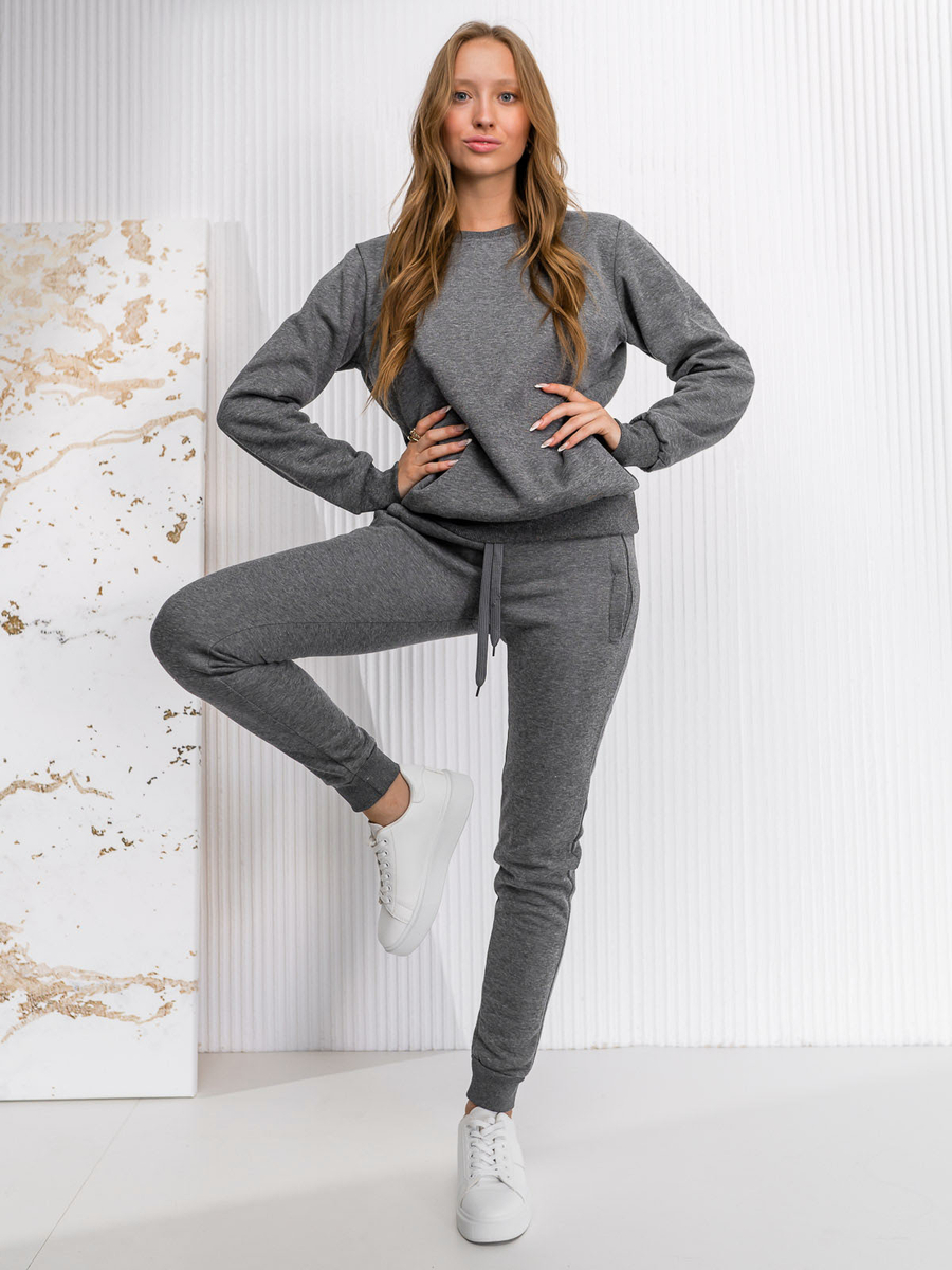 A grafitszürke Bolf 0001A1 női melegítőszett egy pulóverből és melegítőnadrágból áll. Több színben érhető el, ami segít a megfelelő szín kiválasztásában a megálmodott stilzációhoz. Az alja és az ujjak passzésak, mely esztétikusan kiemelei a termék fazonját. A derék passzéval és zsinórral való állíthatóságának köszönhetően a nadrág jól illeszkedik az alakra. Két külső zsebbel. A szár passzés. A szett basic jellegének köszönhetően több alkalomra is felvehető. Jól beválik hegyi kirándulásokra és játékra a friss levegőn. A szettet hölgyeknek ajánljuk, akik értékelik a mozgás szabdságát. Nagyon jó minőségű anyagból, 65 % pamutból és 35 % poliészeterből készült, biztosítja a komfortot és kényelmet a viselés során. Hozd létre saját sportos lookodat szettbe párosítva sportdzsekivel. Nagyszerűen mutat ezen felül párosítva egy farmerdzsekivel.