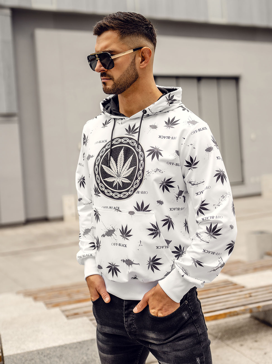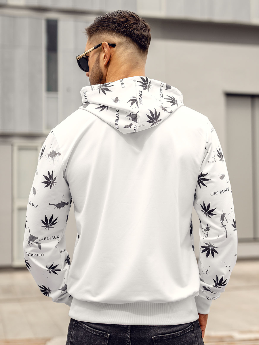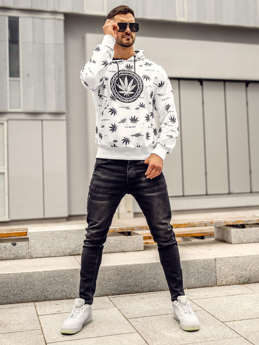 A felhasználók véleménye Fehér mintás férfi pulóver kapucnival Bolf HM628A