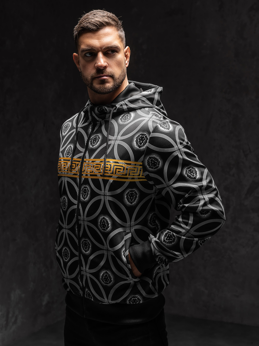 A fekete, cipzáras, kapucnis férfi pulóver Bolf 27B8123A1 egy időtlen klasszikus a mindennapi összeállításokban. Klasszikus szabású melegítőfelső, állítható kapucnival, ideális a sportos stilizációkhoz. Egyedi, divatos jelleget a dizájnos nyomat biztosít. A pulcsi alsó része és az ujjai passzésak, ennek köszönhetően melegen tart és védelmet nyújt a szél ellen a hűvösebb napokon. Melegítőfelső, két nyitott zsebbel Nagyon kellemes az anyaga, mely kényelmet biztosít keményebb edzés közben. Sportos outfitet keresel? A melegítőfelsőt párosítsd melegítőnadrággal, pólóval és mellénnyel!