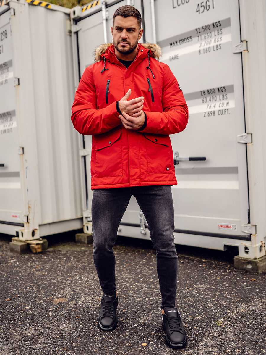 A piros téli férfi parka Bolf WX032AA tökéletes választás a téli szezonra. Klasszikusan cipzárral és patentokkal záródik. Állógallérral és levehető, állítható kapucnival rendelkezik, amely megvéd a széltől és esőtől. Különleges, díszítő elem a levehető szőrme a kapucnin, valamint a logó az ujján. Az idomuló és egyenes szabásának köszönhetően benne mindenki különlegesnek látszik. A kabát praktikus zsebekkel rendelkezik, mellkasi zsebek cipzárral, valamint külső zsebek fedővel, amelyek patenttal záródnak. Belül még egy zseb található. Magas minőségű anyagból készült dzseki, ennek köszönhetően kellemes a tapintása és nagyon kényelmes. 100% poliészterből készült. Az univerzalitásnak köszönhetően nagyszerűen mutat különféle stilizációkban. Tökéletes párosítást alkot farmerrel és hosszú ujjú pólóval.