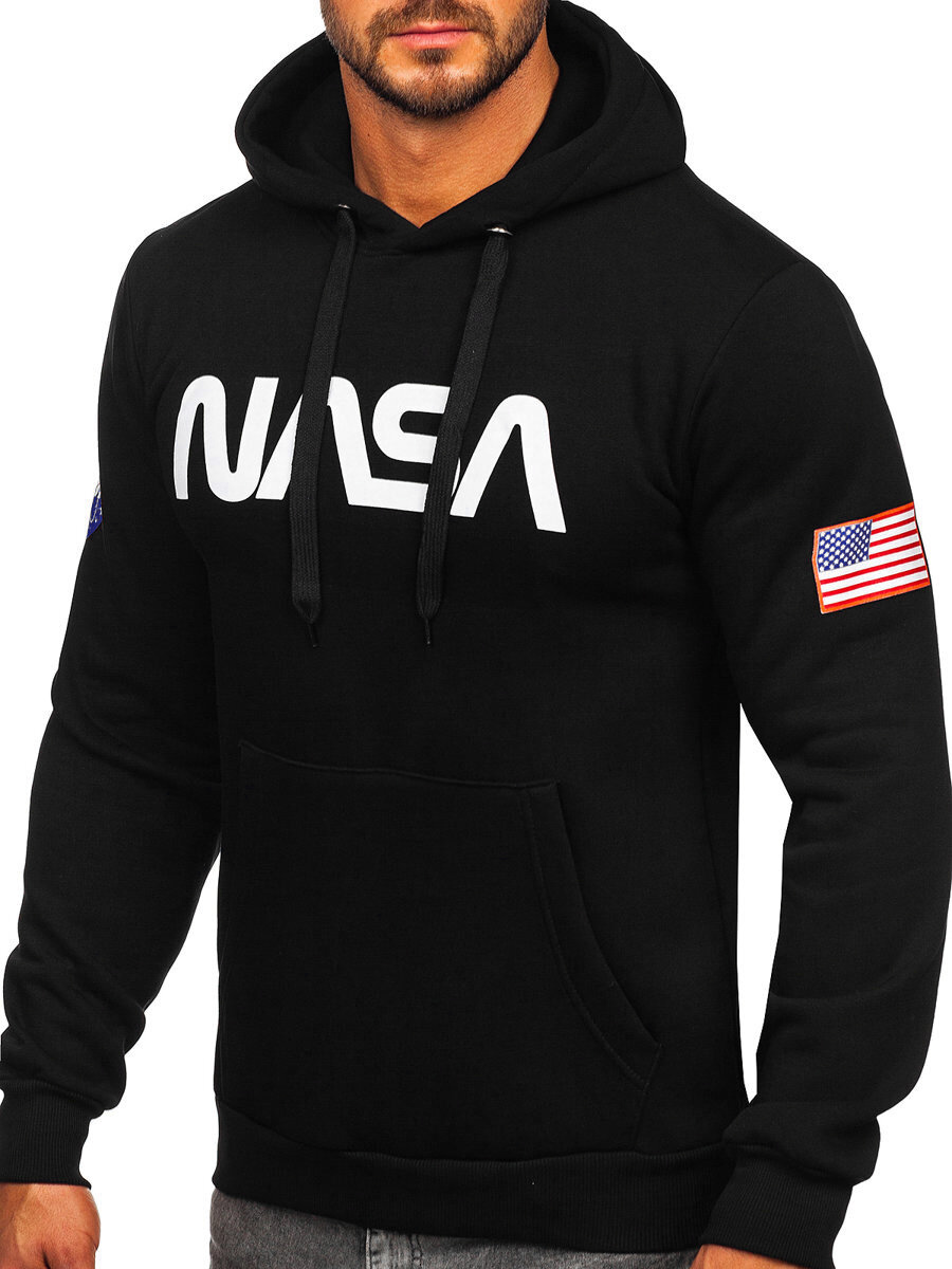 A felhasználók véleménye Fekete férfi pulóver kapucnival kenguruzsebes mintás Bolf 14600