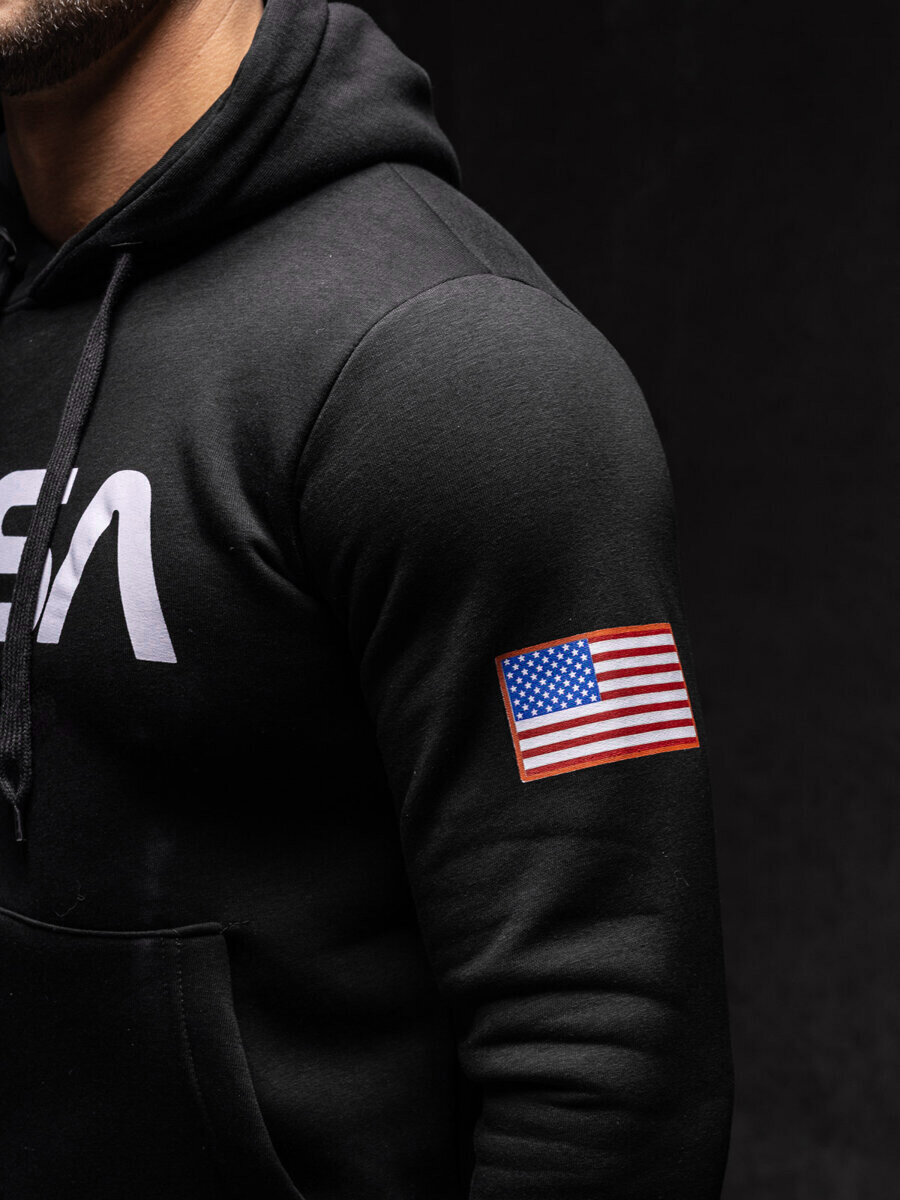 A felhasználók véleménye Fekete férfi pulóver kapucnival kenguruzsebes mintás Bolf 14600A1