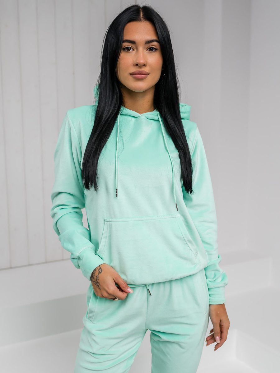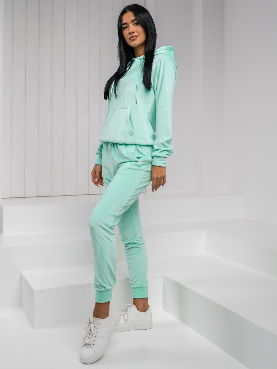 A felhasználók véleménye Menta színű kapucnis kétrészes női bársony melegítő Bolf 8C1175