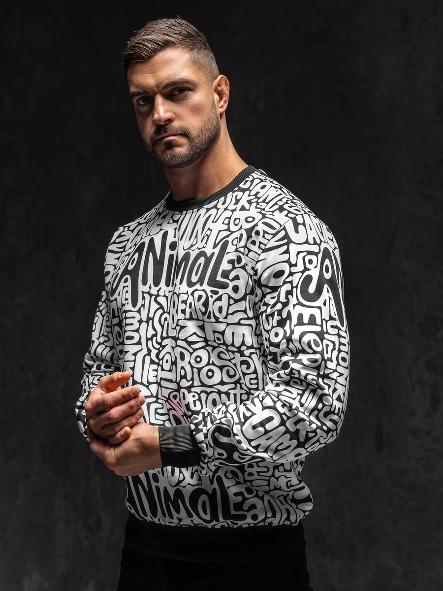 A felhasználók véleménye Fekete-fehér mintás férfi pulóver kapucni nélkül Bolf 8B1131A1