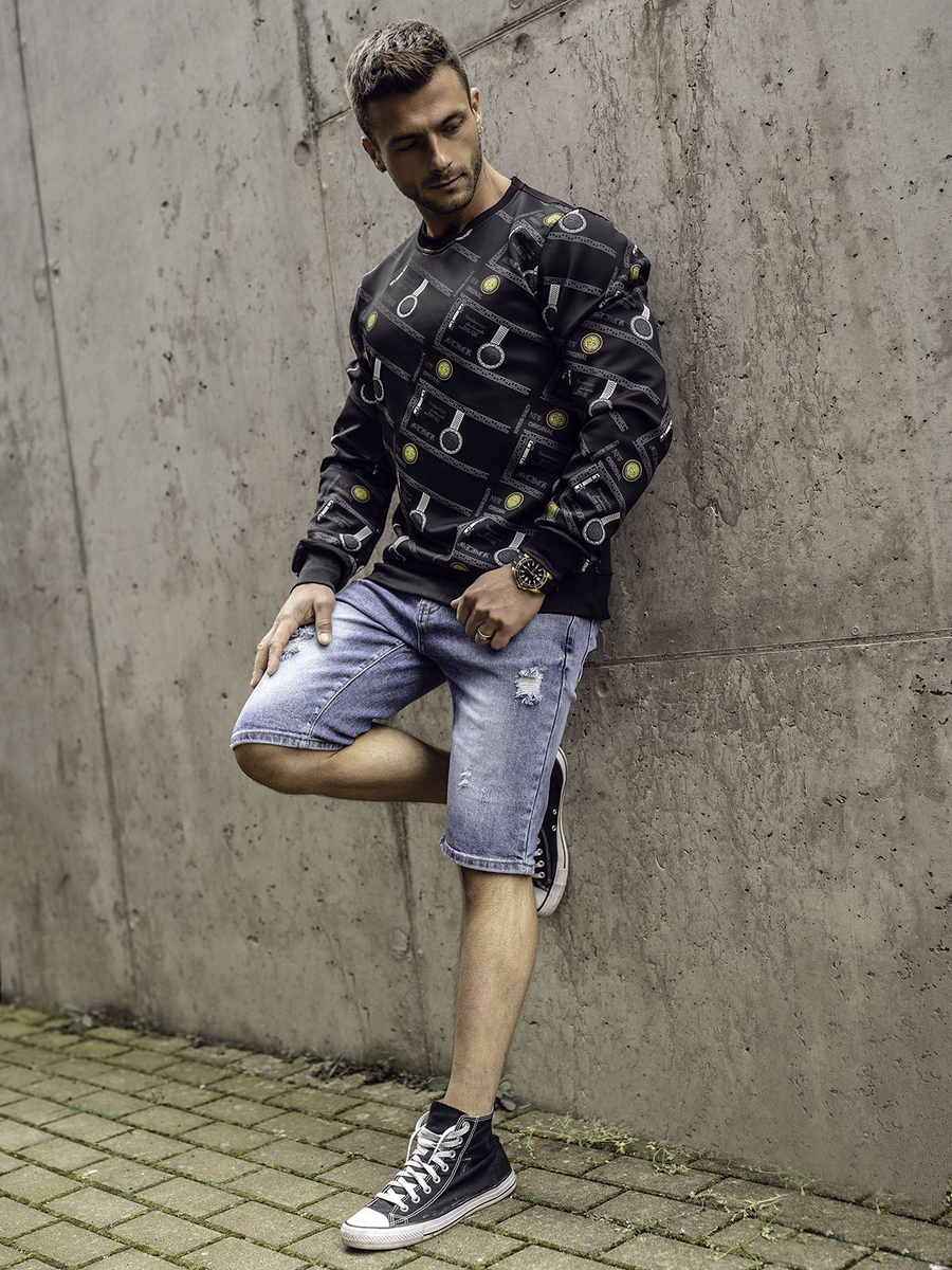A felhasználók véleménye Fekete mintás férfi pulóver kapucni nélkül Bolf 8B1110A