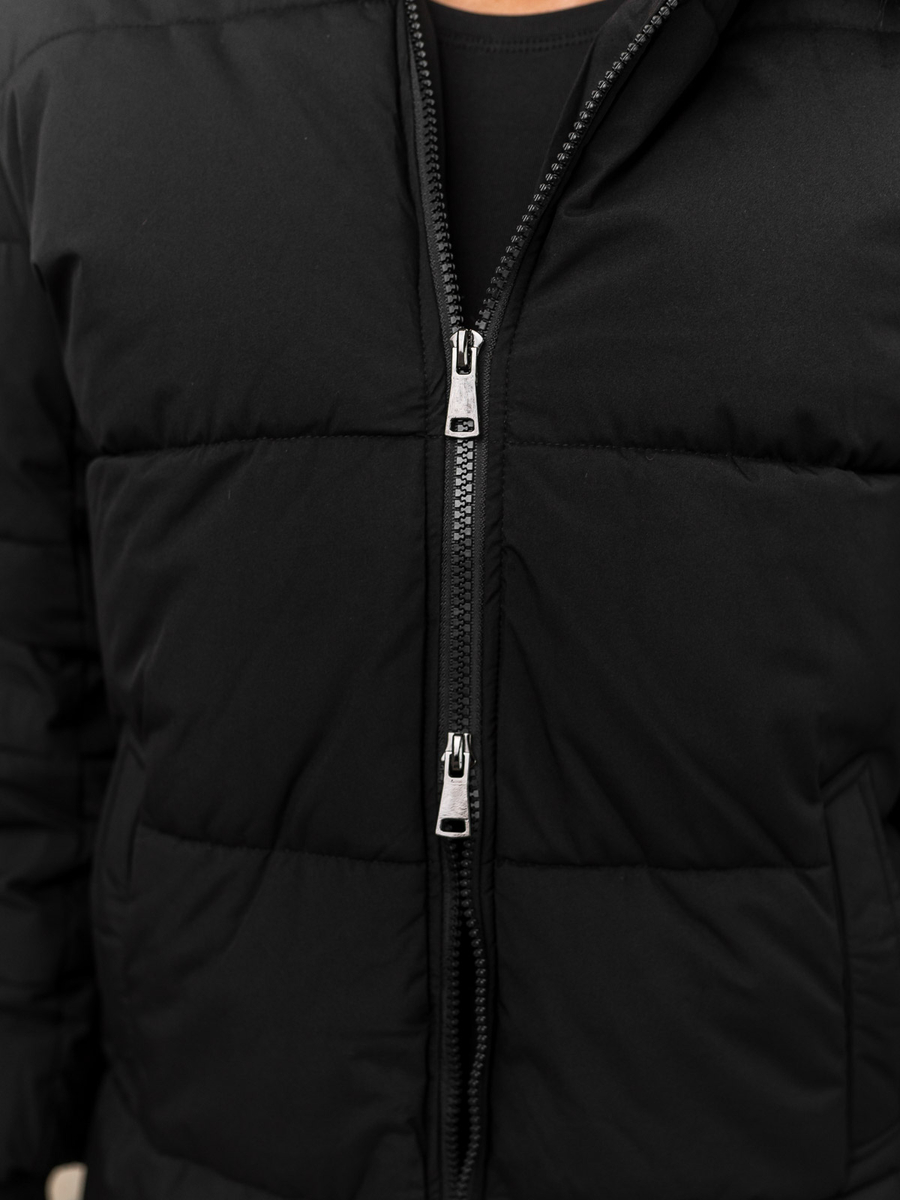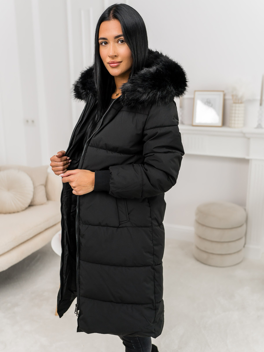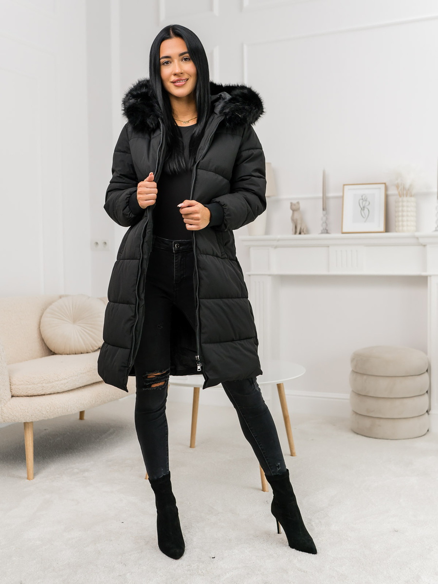 A felhasználók véleménye Fekete női hosszú steppelt kapucnis téli kabát Bolf 11Z8082