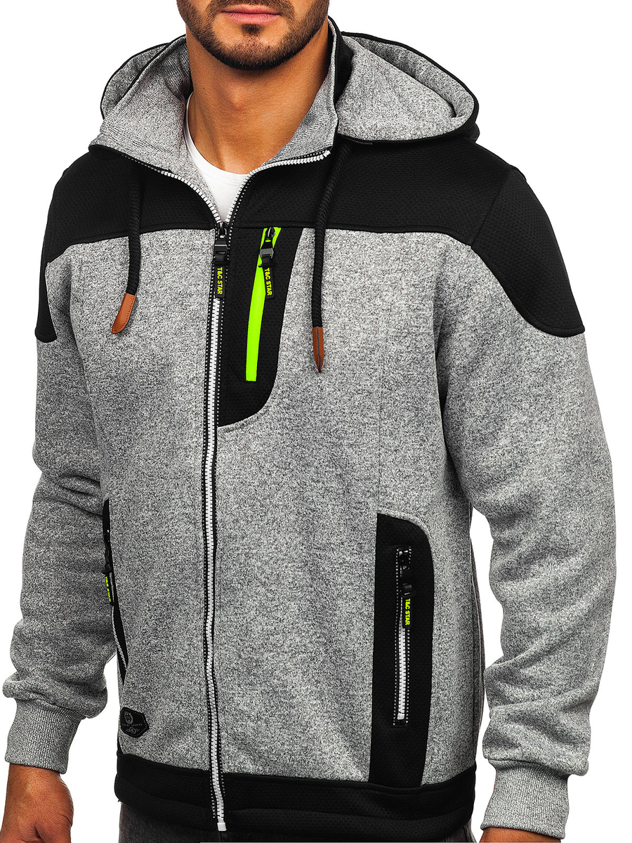 A felhasználók véleménye Szürke férfi kapucnis pulóver-kabát Bolf TC1262