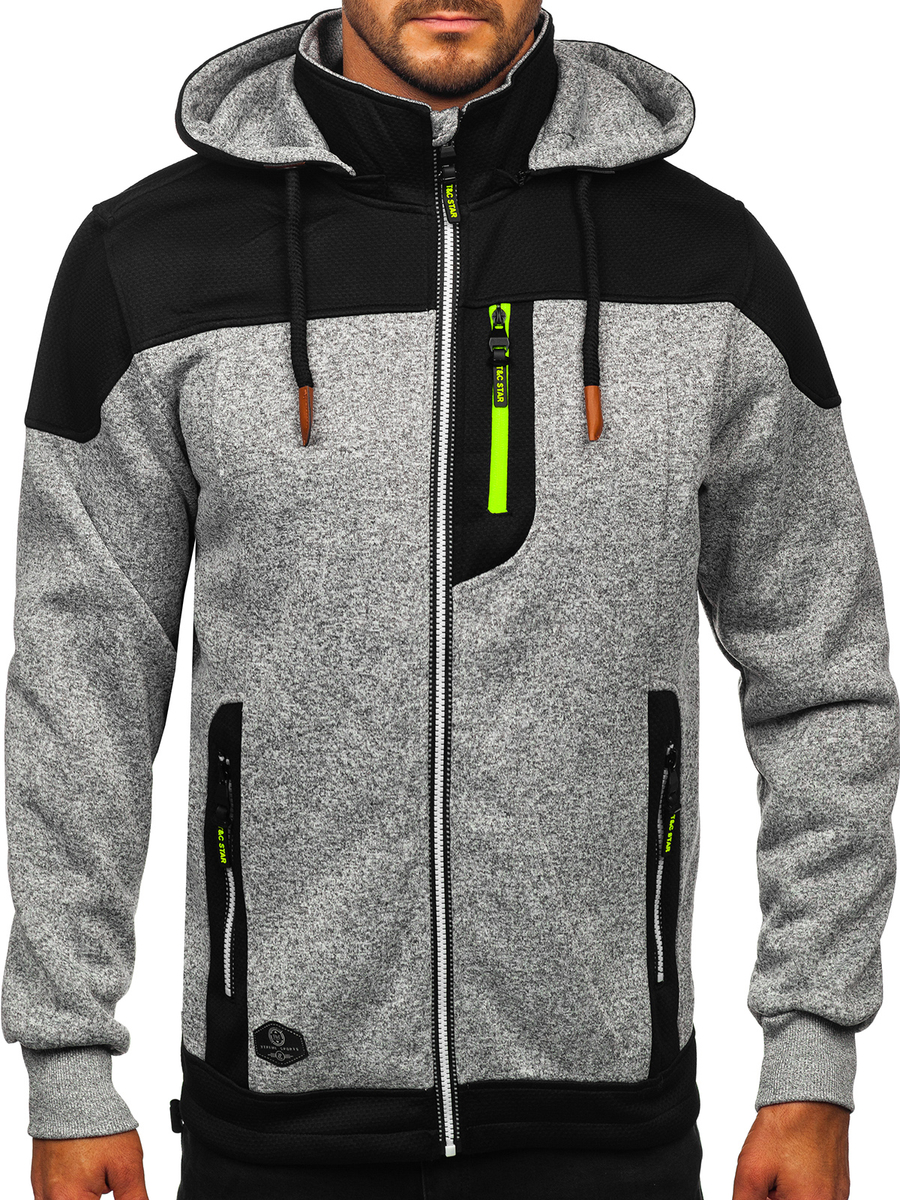A felhasználók véleménye Szürke férfi kapucnis pulóver-kabát Bolf TC1229
